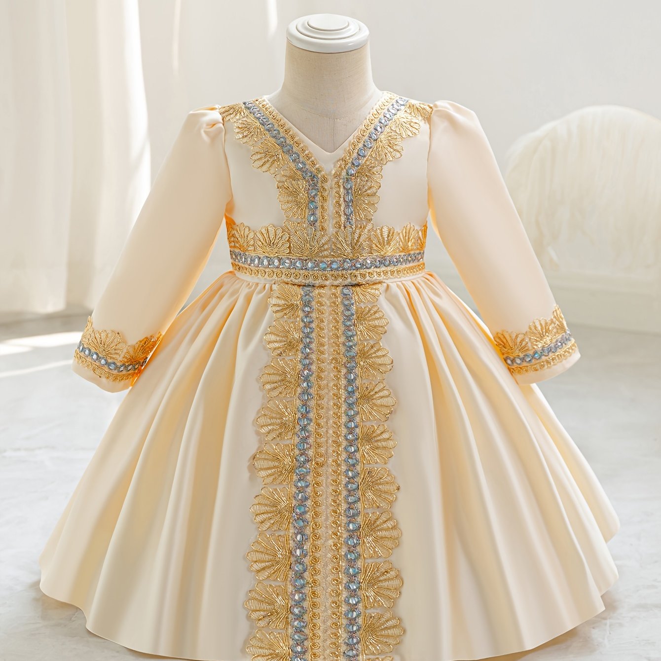 Product information for TEMU Big Girls Evening Dress Floral Lace & Smocked Hem Birthday Dress Kids Piano Performance Party Dress