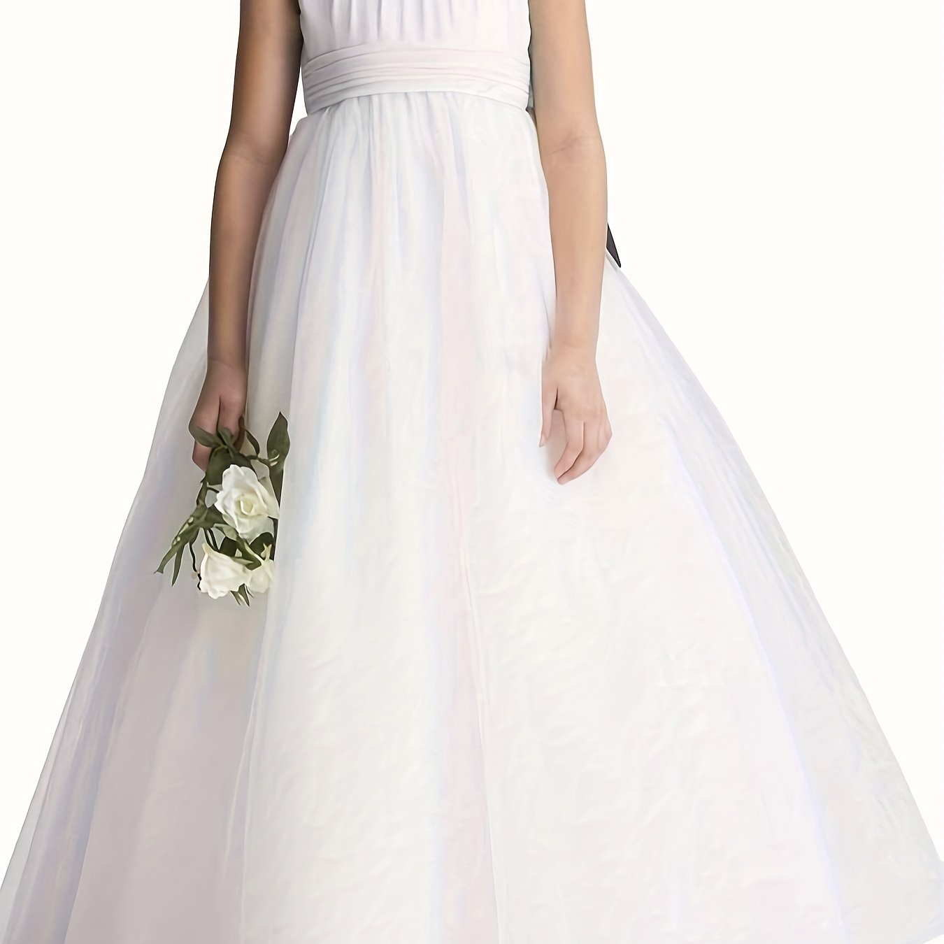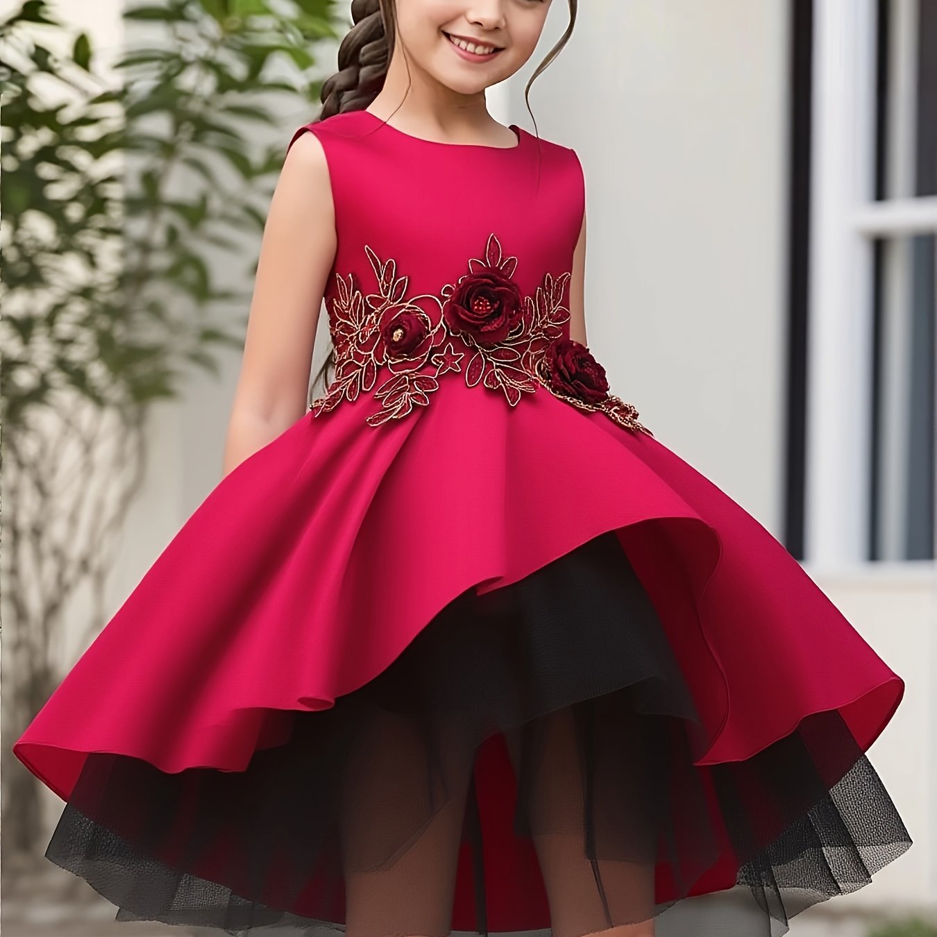 TEMU Big Girls Evening Dress Floral Lace & Smocked Hem Birthday Dress Kids Piano Performance Party Dress