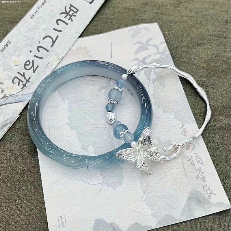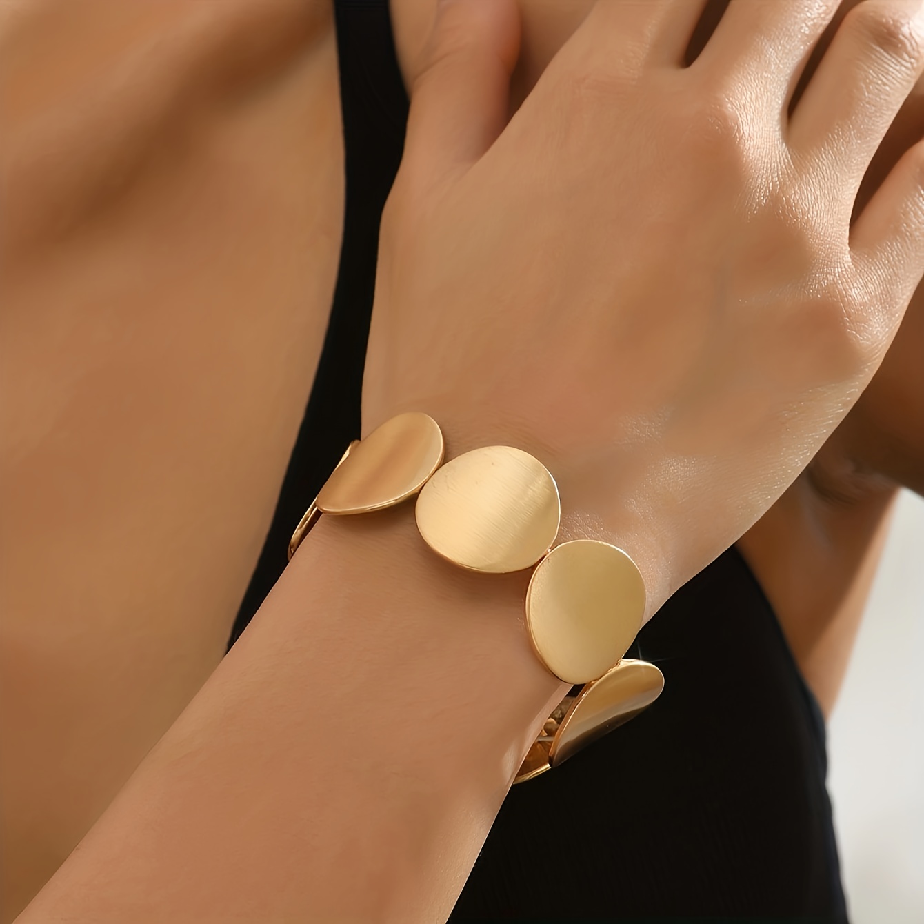 TEMU Bohemian Western-style Retro Fashion Minimalist Geometric Carved Alloy Electroplated Antique Silvery Elastic Bracelet For Women. Suitable For Autumn And Winter, , Holidays, Etc