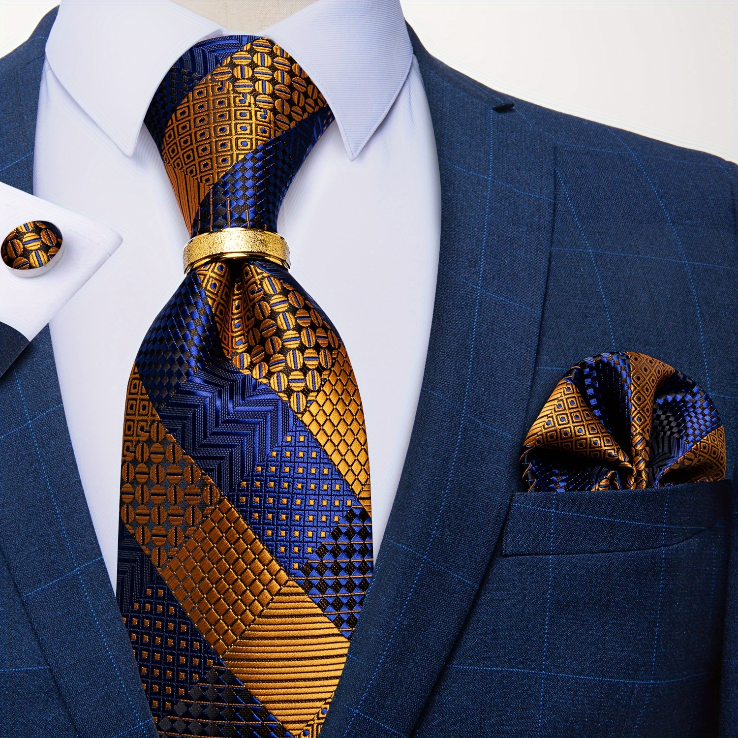 TEMU Brand Classic Tie Pocket Squares Cufflink Set For Men Suit Accessories Black Solid Fit Wedding Holiday Gift