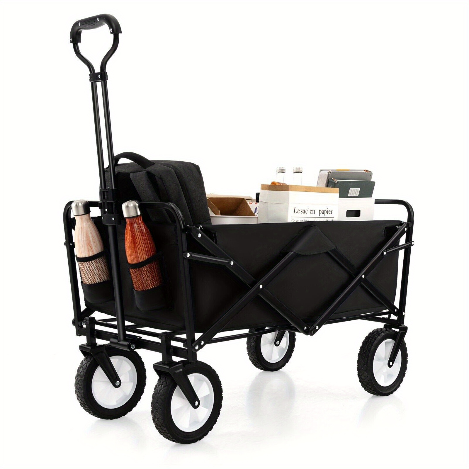 Product information for TEMU Carro de Jardín 180 L Carro de Transporte Plegable con Ruedas Paredes Extensibles y Ángulo del Mango Ajustables Carga 120 kg para Patio Playa Caqui
