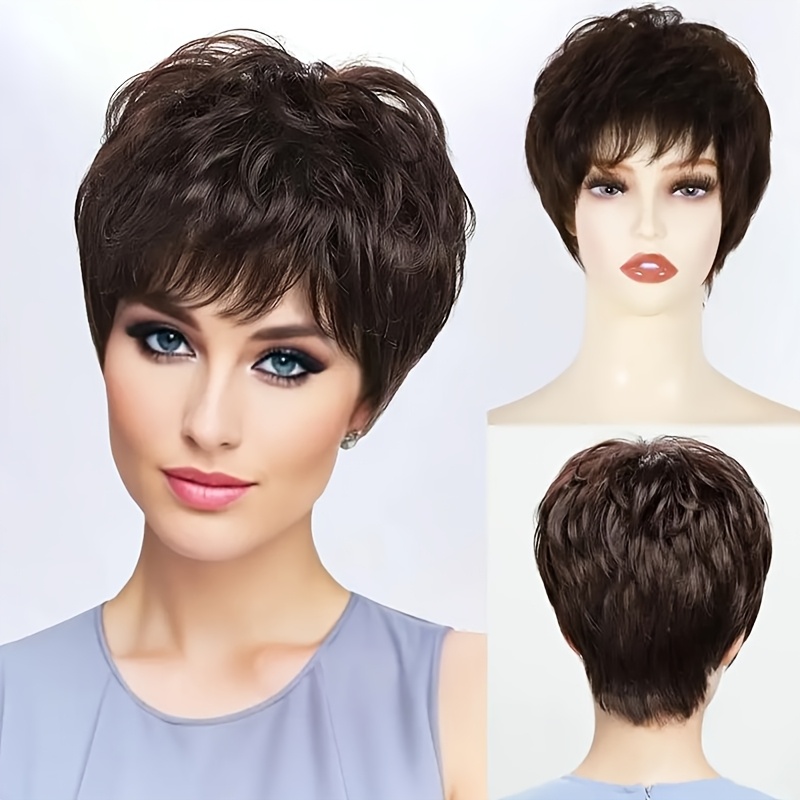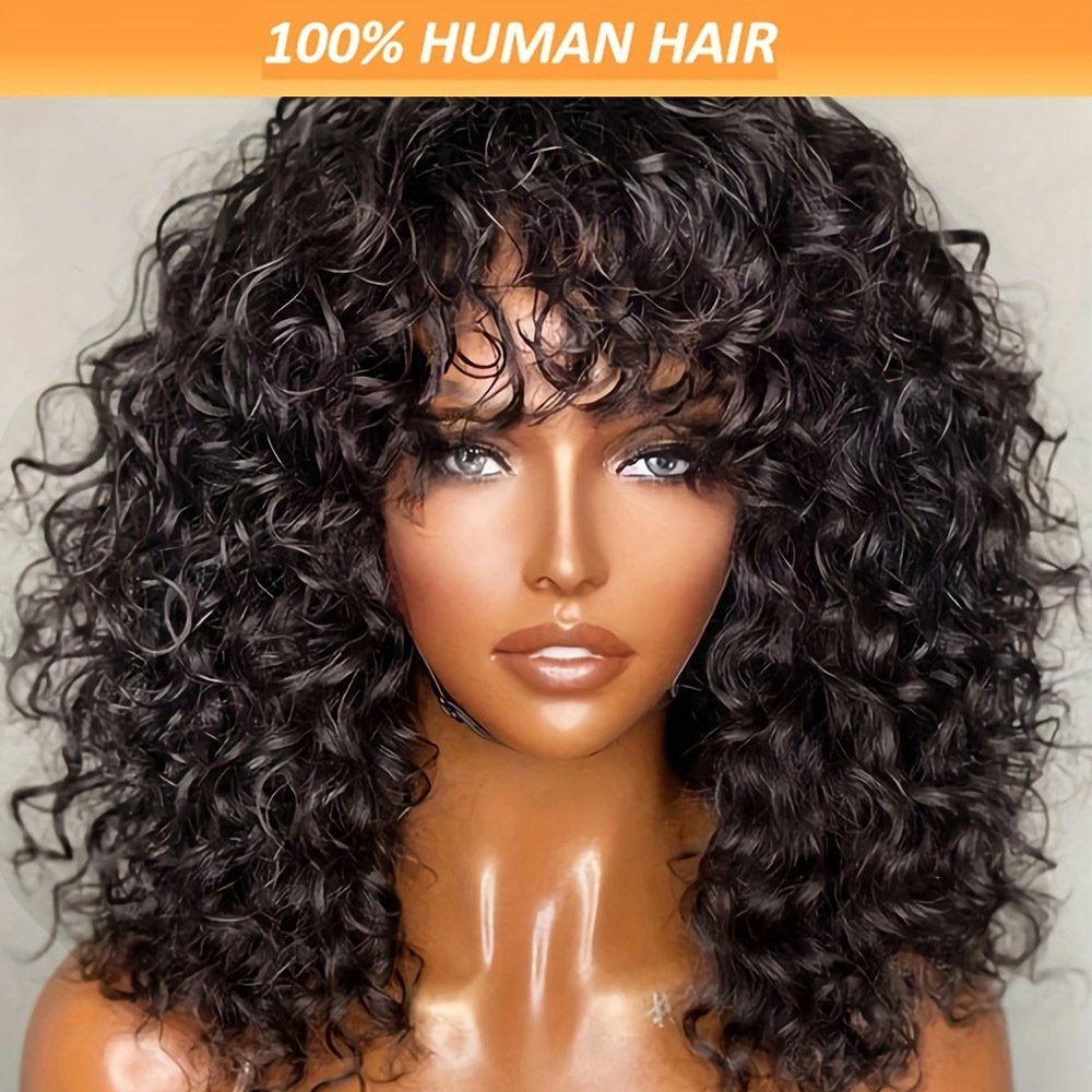 TEMU Chic Curly Wave Cut Wig For Women - 180% Density Brazilian Human Hair, Afro Style, Natural Look, Breathable , Day Gift, Everyday Use, Everyday Afro Wig | Natural Look Wig | Durable Wig