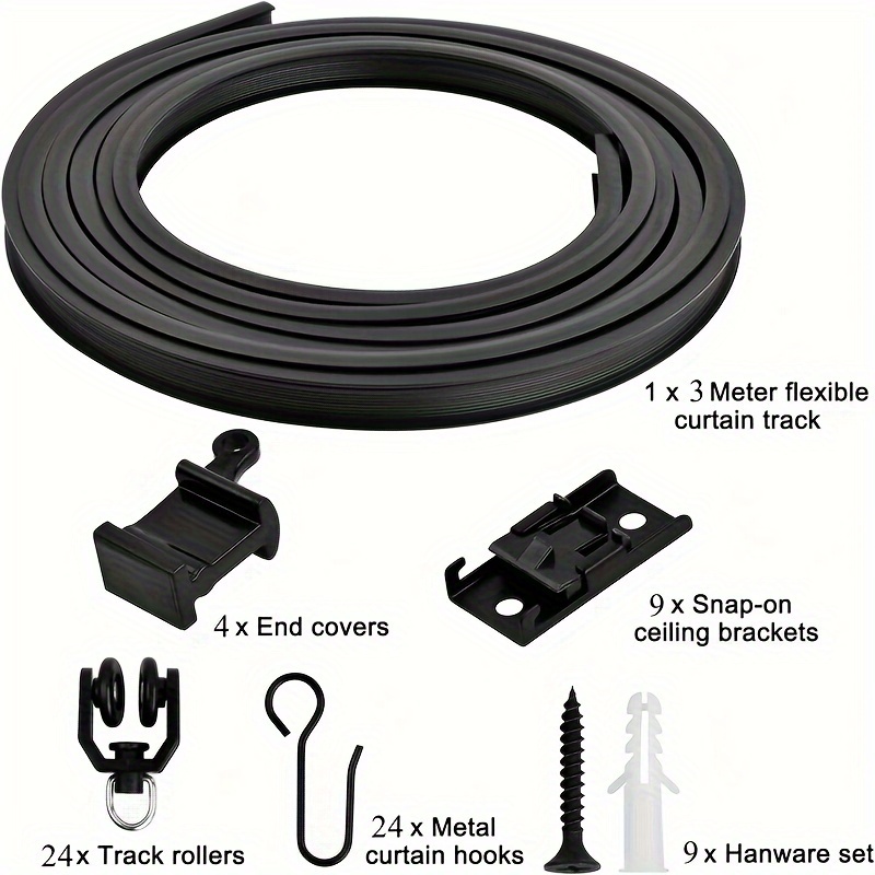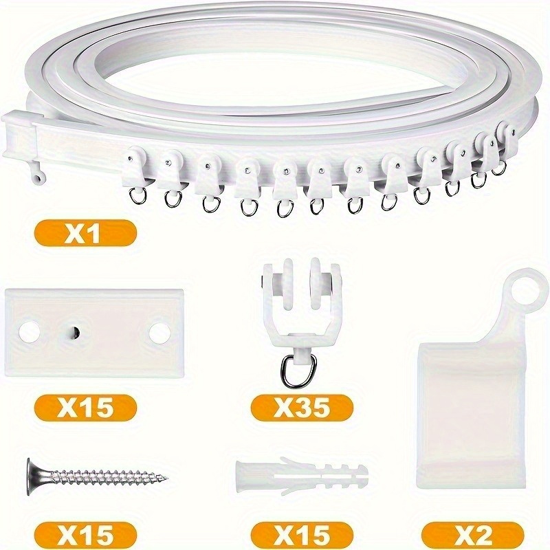 TEMU Classic Curtain Track Set - Coated Steel, Easy To Cut And Clean, And Durable Curtain Rod With Hooks And Eyelets - No Power Supply Needed