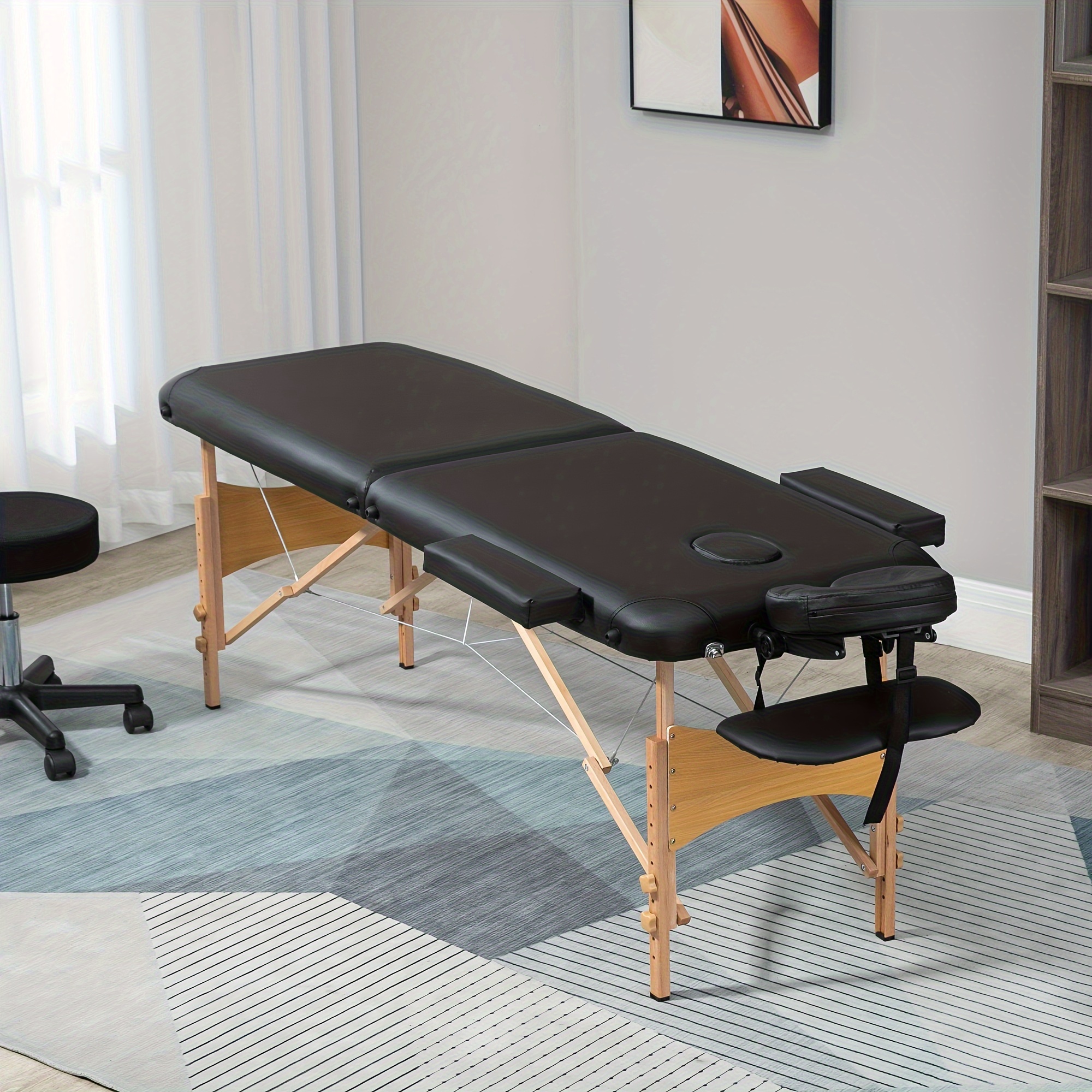 TEMU Costoffs Folding Table 2-zone Height Adjustable Bed Table Bench With Headrest & Armrests & Pocket