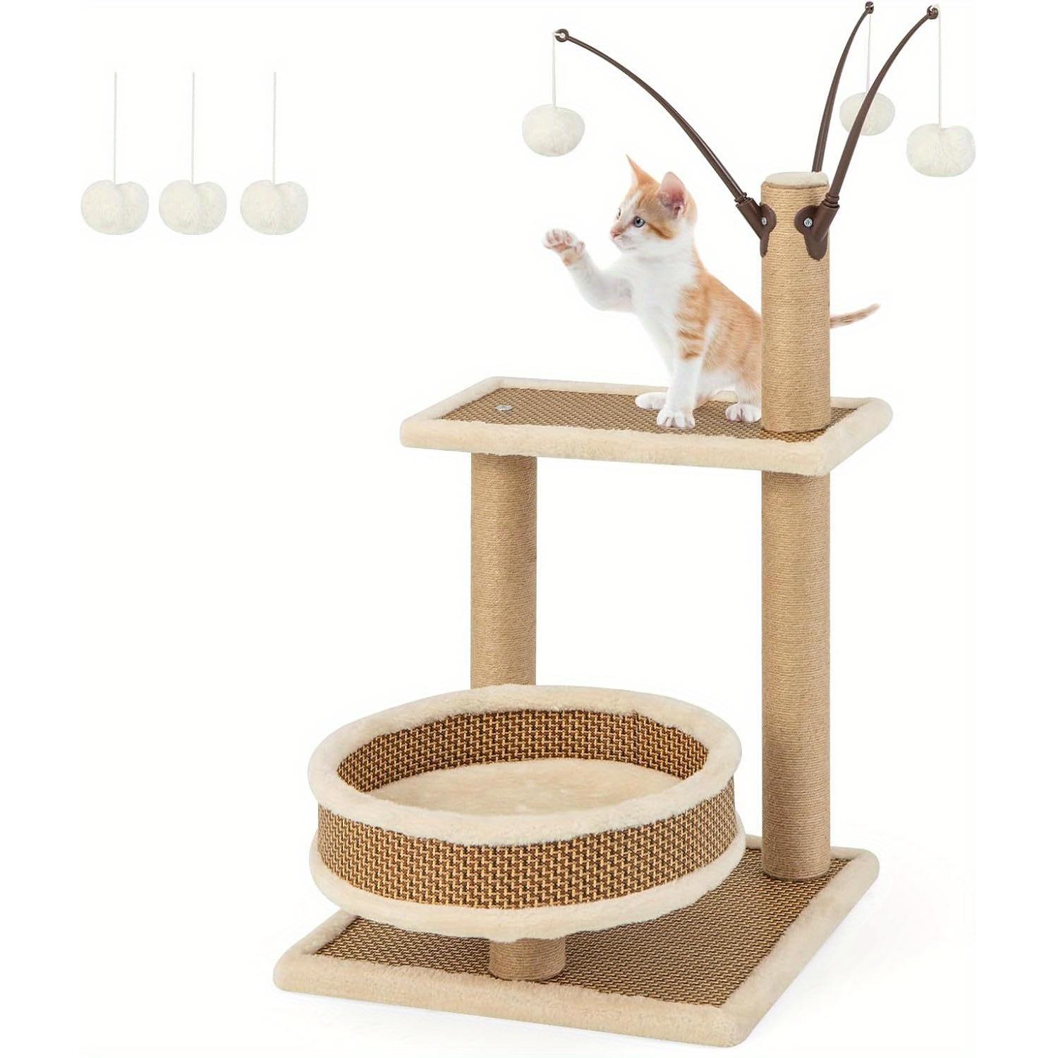 TEMU Costoffs Rattan Scratching Tree Cat Tree Stable Climbing Tree With Cat House Washable Cushions Cat Scratching Tree With Sisal Stems