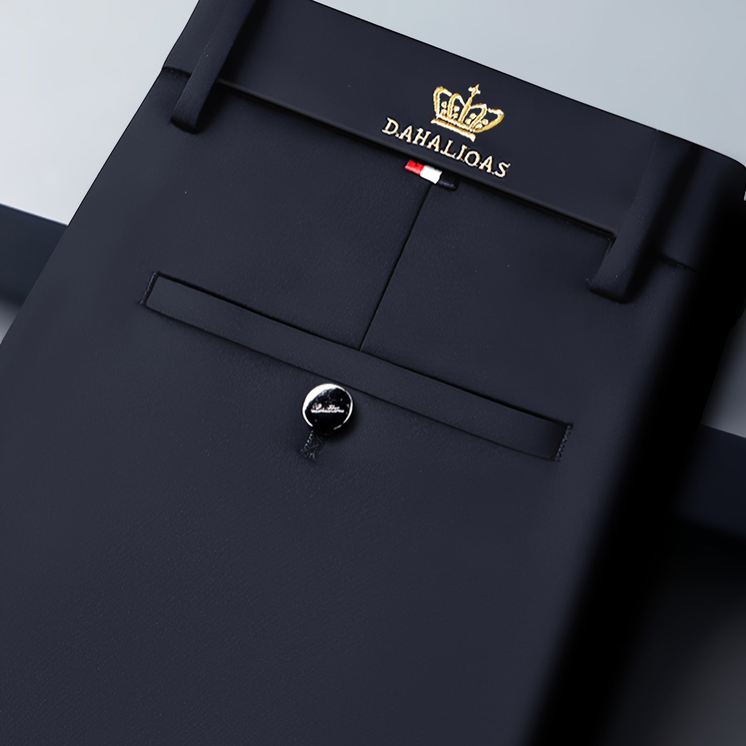 TEMU Costume Homme en Tissu Fibre - Pantalon Décontracté d' aux Plis, Noir avec Lettrage Doré et Couronne, Coupe Regular, Lavable à (Non )