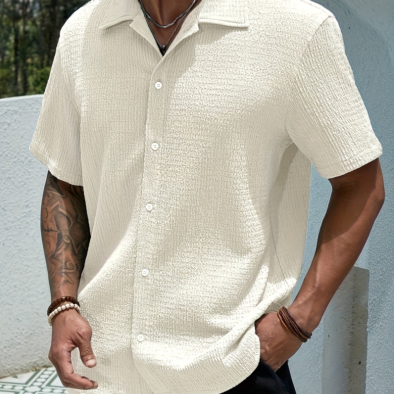 TEMU Custom Photo Men's Vibrant Tropical Print Short Sleeve Shirt - Elegant Hawaiian Style, Comfortable Casual Fashion, V-neck With Front Button Closure - Ideal For Summer Beachwear