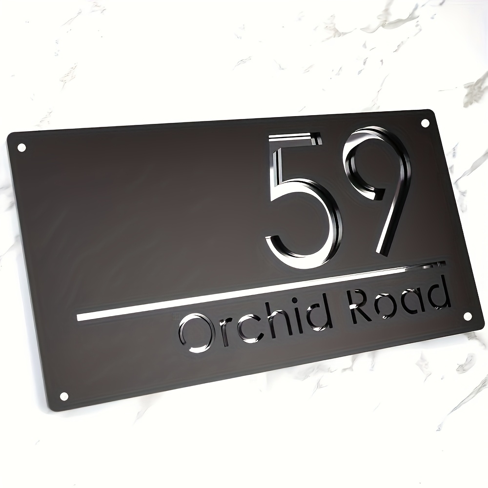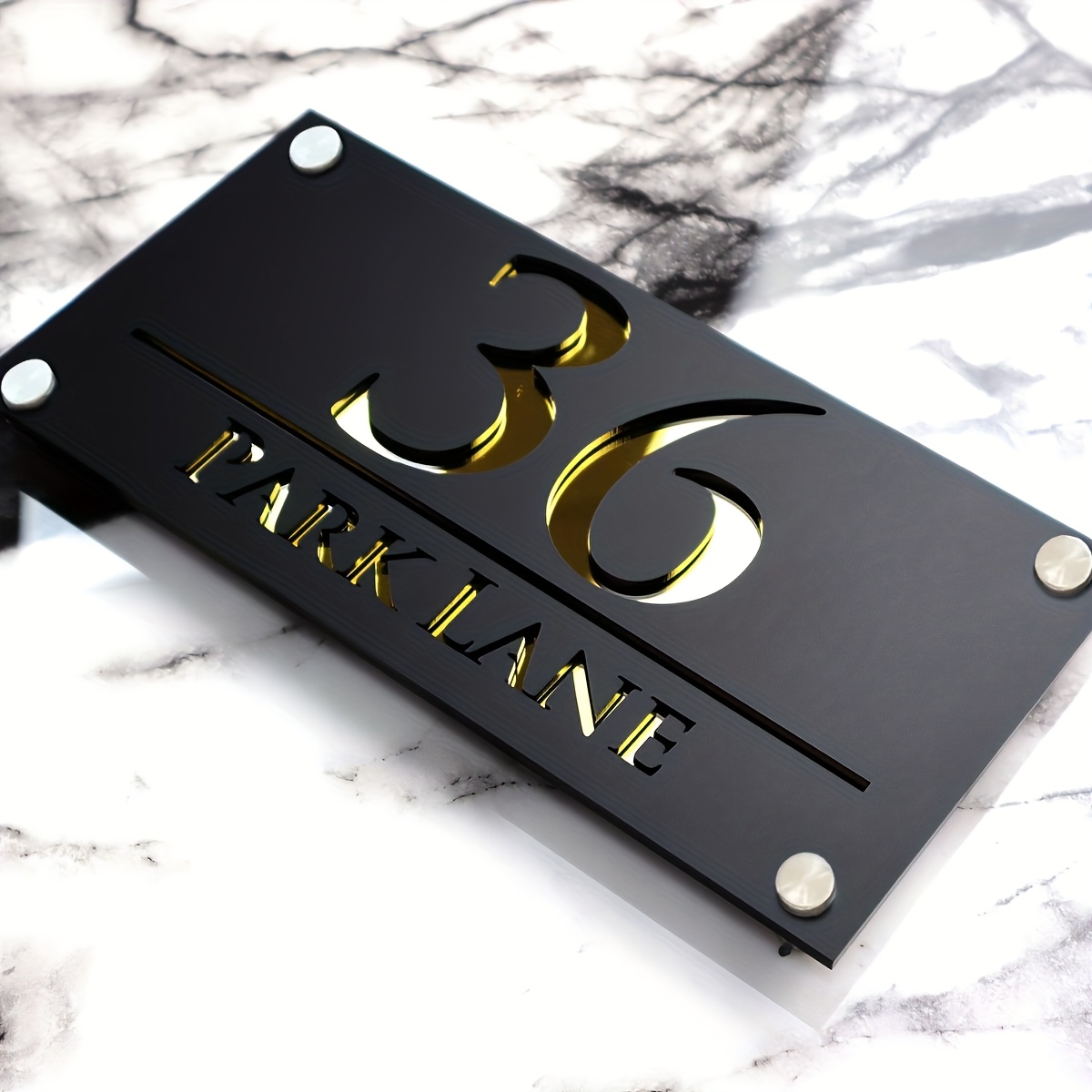 TEMU Customizable Modern Laser-cut Acrylic Address Number Plate - Waterproof Outdoor House Number Sign With Golden & Name, Wall-mounted For Home, Apartment, Entryway, Elegant Font Design