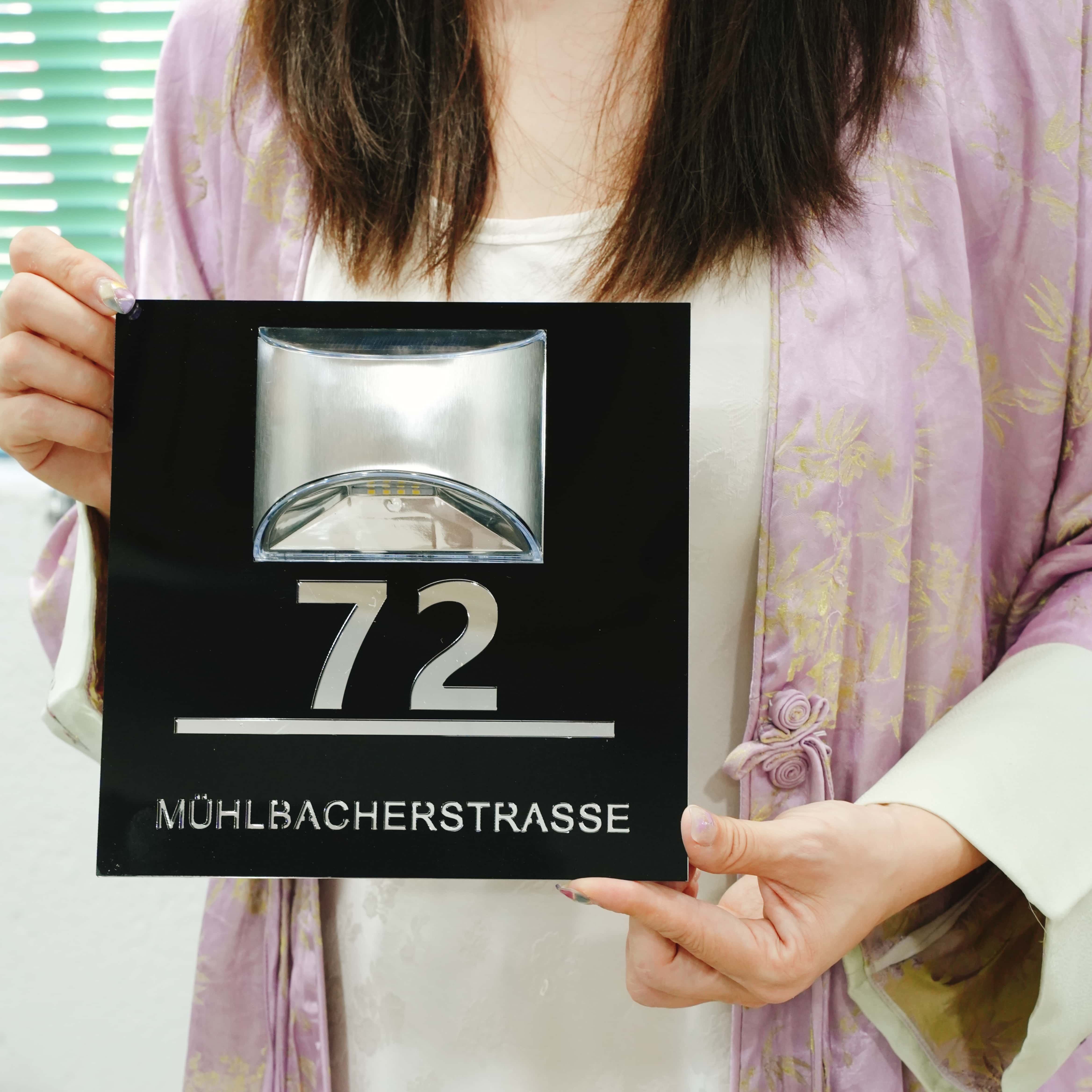 Product information for TEMU Customizable Modern Laser-cut Acrylic Address Number Plate - Waterproof Outdoor House Number Sign With Golden & Name, Wall-mounted For Home, Apartment, Entryway, Elegant Font Design