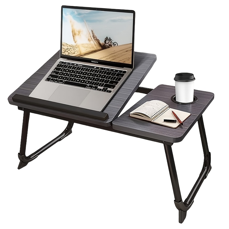 TEMU de Escritorio para Cama de Portátil, Mesa de Cama Plegable Portátil, Soporte de Lectura para Cuaderno con Cajón de Almacenamiento y Portavasos para Desayunar en la Cama/Sofá, Fibra de Madera