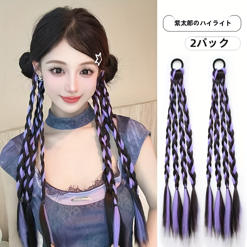 TEMU Elegant 24-inch Synthetic Ponytail Extension - Fish Tail In Pink, Blue, - , Music Festivals & Cosplay, Ponytail Accessories