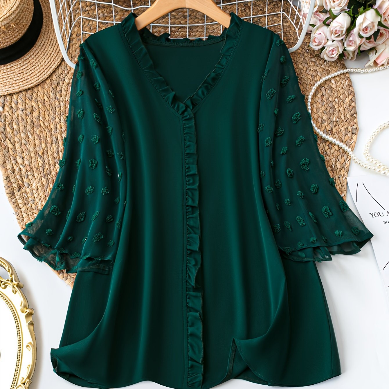 TEMU Elegant Floral Print Blouse For Women - V-neck, Cold Shoulder Design With Lace Detail, Polyester And Elastane , Lightweight Summer Top, Flexible Clothing|elegant Floral Top|polyester