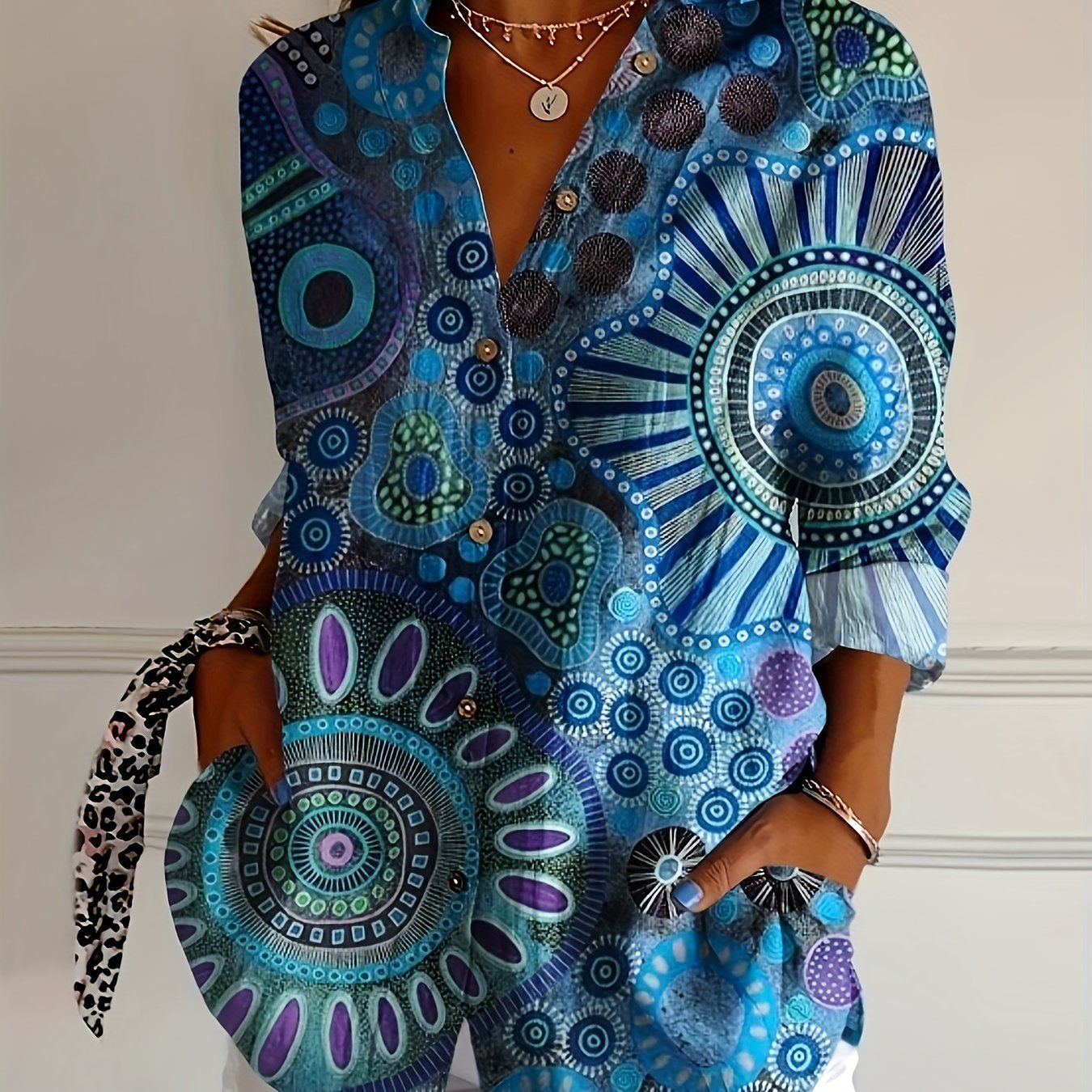 TEMU Elegant Plus Size Stripe Print Blouse - 100% Polyester Crew Neck Top, Oversized Non-stretch Woven Shirt For All