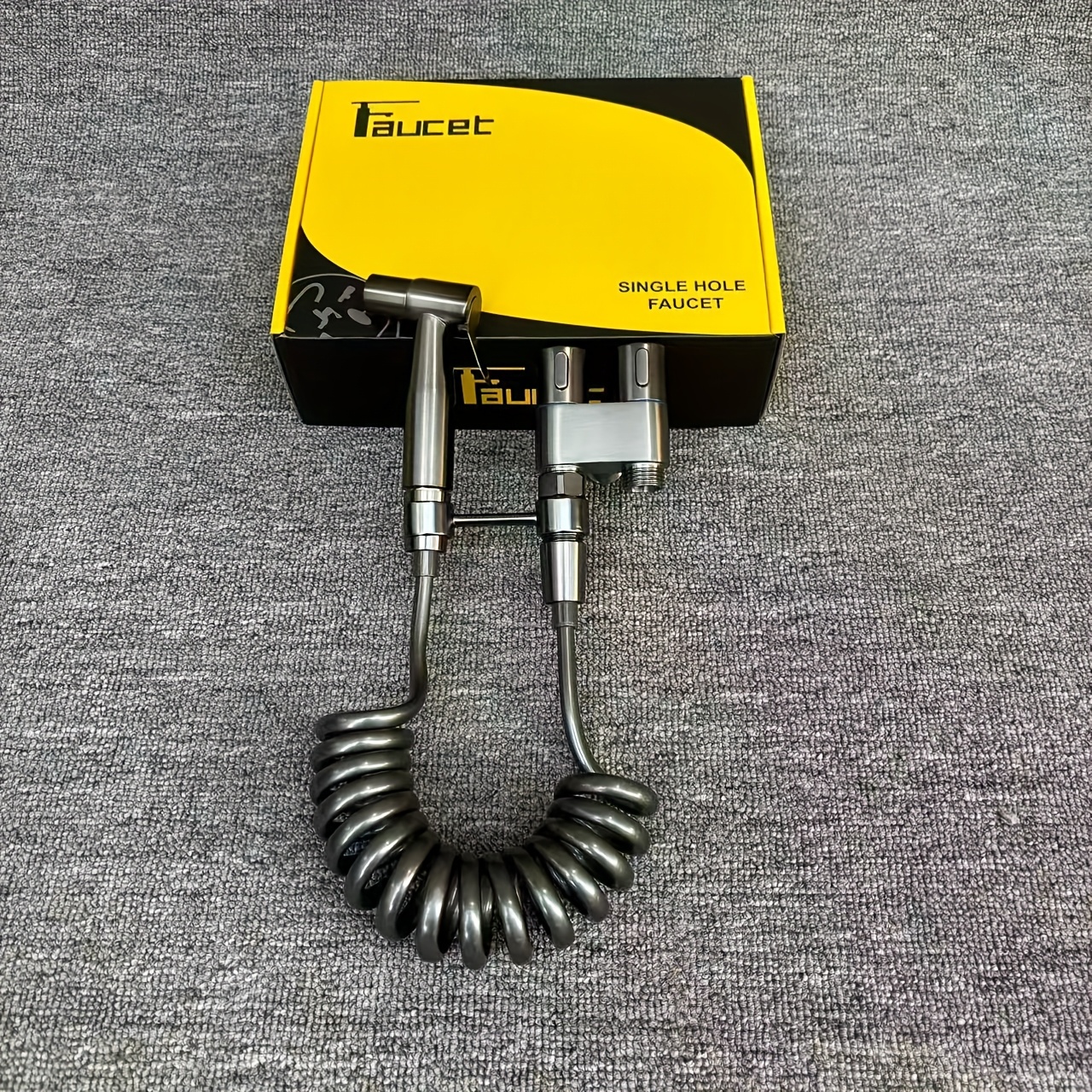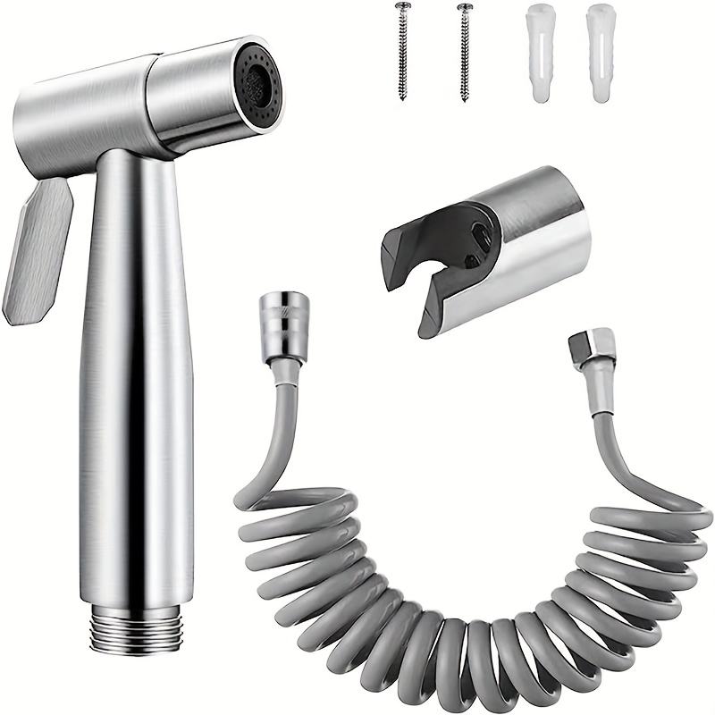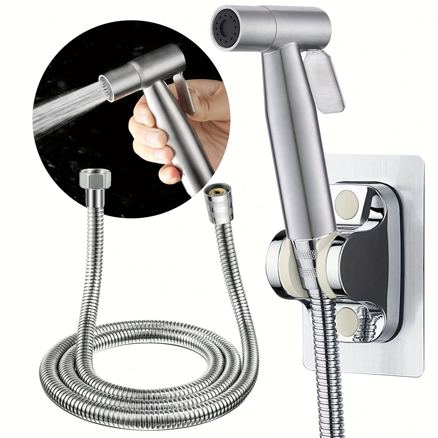 TEMU Ensemble de 4 Pulvérisateurs de Bidet à Main en Acier Inoxydable avec Connecteur en T, Tuyau Souple & Montage Mural - Outil de Nettoyage de Salle de Bain à Haute Pression