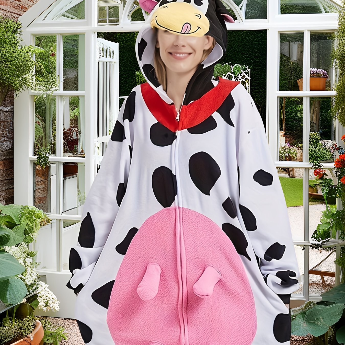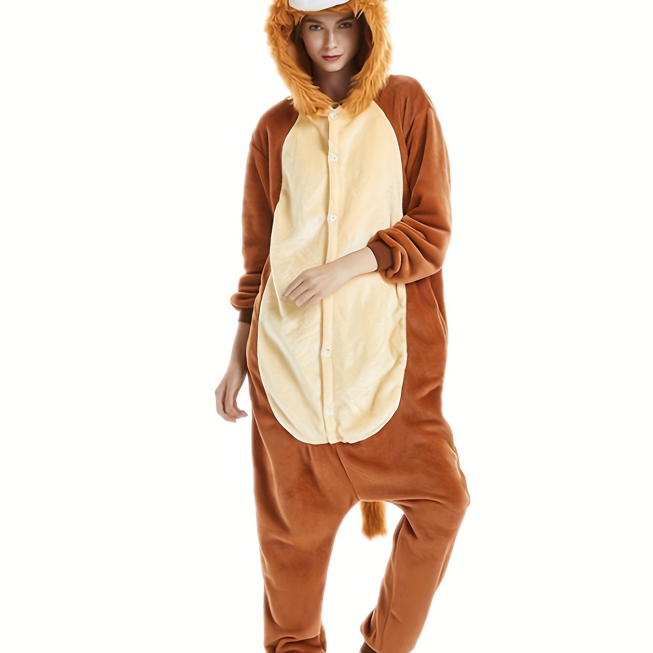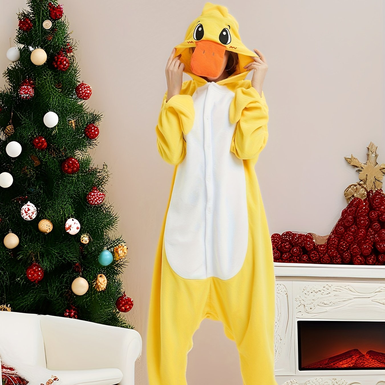 TEMU Erwachsenes Fleece Weihnachts-Overall, Langarm-Katzen-Overall mit Rundhalsausschnitt und Knopfdetails, 100% Polyester-Strickstoff, Einfarbiger Party-Kostüm für Männer und Frauen,