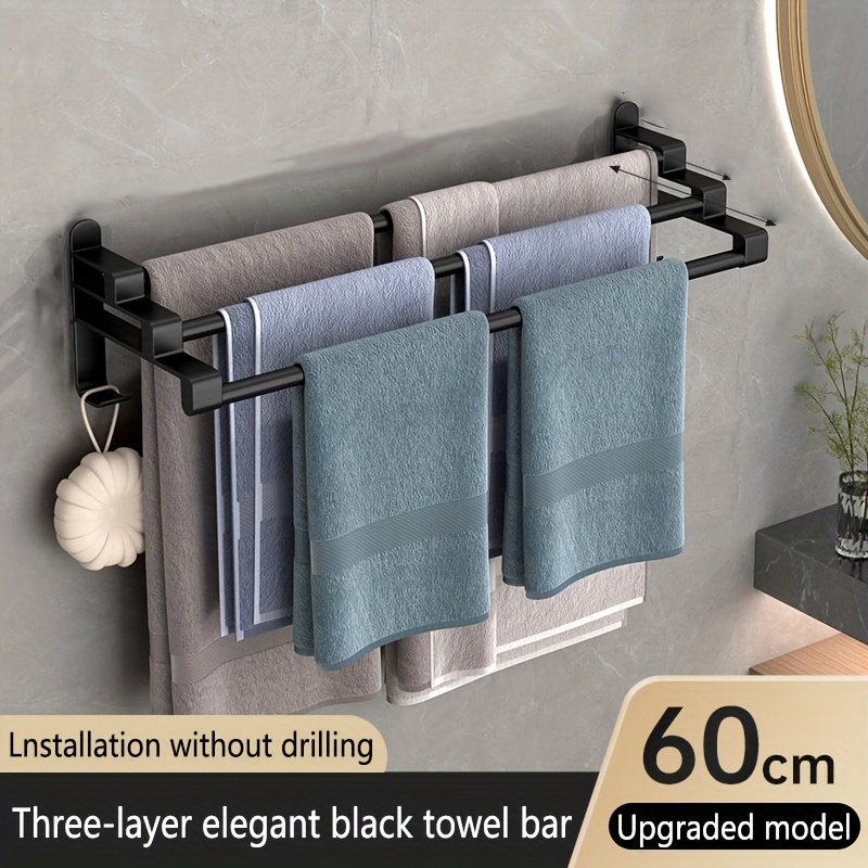 TEMU 1pc Modern Aluminum Double Towel Bar, Black A...