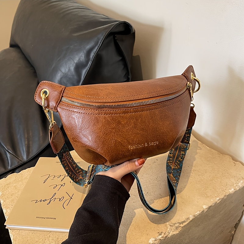 Product information for TEMU Fashionable Light Blue Denim Belt Bag For Women, Casual Chest Bag With Multiple Pockets, Adjustable Strap, Zipper Closure, Nylon Lined, Solid Color, Cowboy Style, Suitable For Shopping And Travel