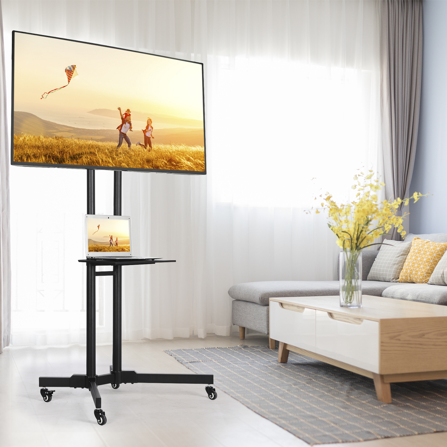TEMU FORGING MOUNT 調整可能なモバイルTVカート、23~60インチの・クリーン対応、高さ&傾斜調節可能、ロックホイール付き最大88ポンド、ノートパソルフ付きポータブルスタンド、VESA 400x400mm、アルミニウム合金構造、簡単組立&安定性機能、携帯用テレビオンホイール