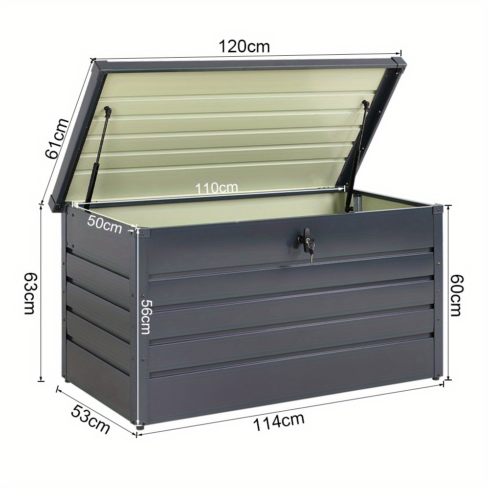 Product information for TEMU Garden Storage Cabinet, Outdoor Tool Shed, Potting Bench Table With Galvanized Top And 2 Shelves For Yard Tools Or Pool Accessories, Grey