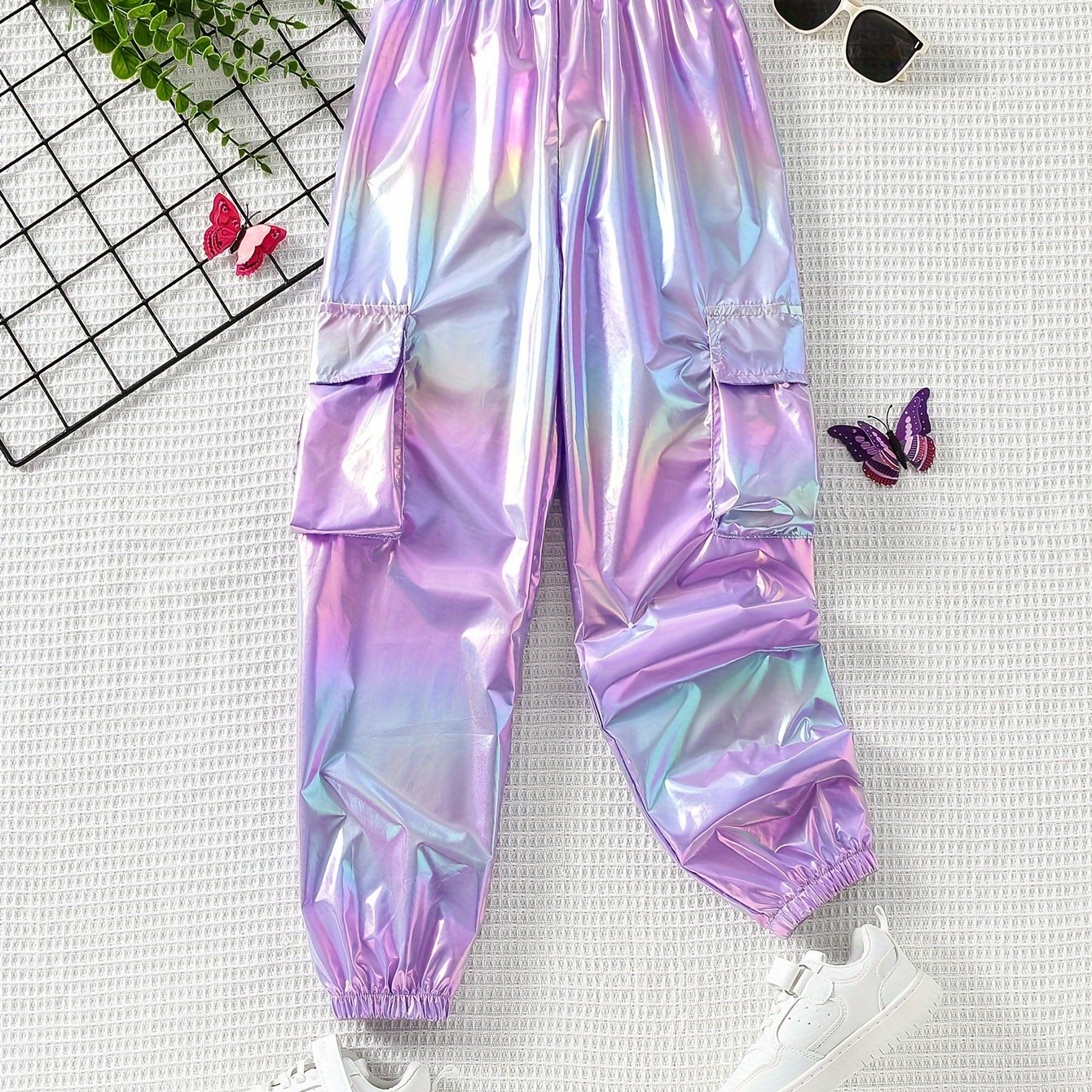 TEMU Girls' Cozy Fleece-lined Leggings With Astronaut & Shark Print - Stretchy, Thickened Fall/winter Pants In Brown, Machine Washable, Girls Pants, Outdoor