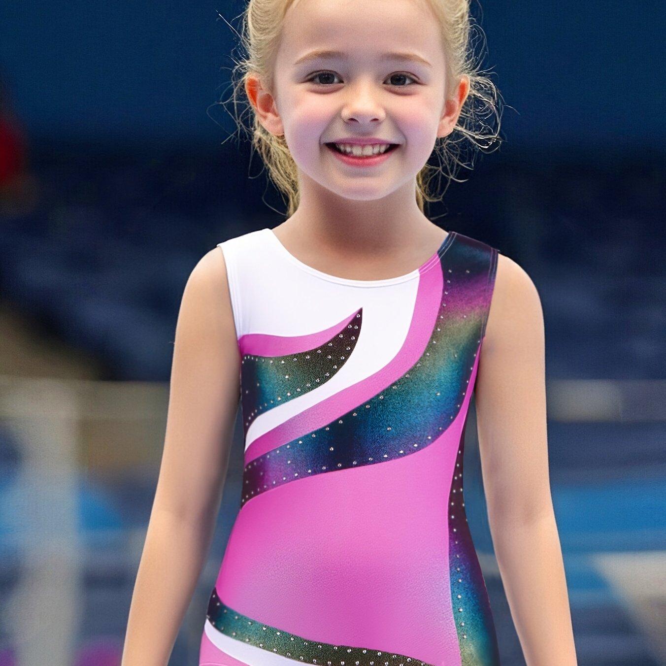 Product information for TEMU Girls' Sparkling Rhinestone Gymnastics Leotard - Long Sleeve, Stretchy & Breathable Dance Bodysuit For Performances And Practice, Outdoor
