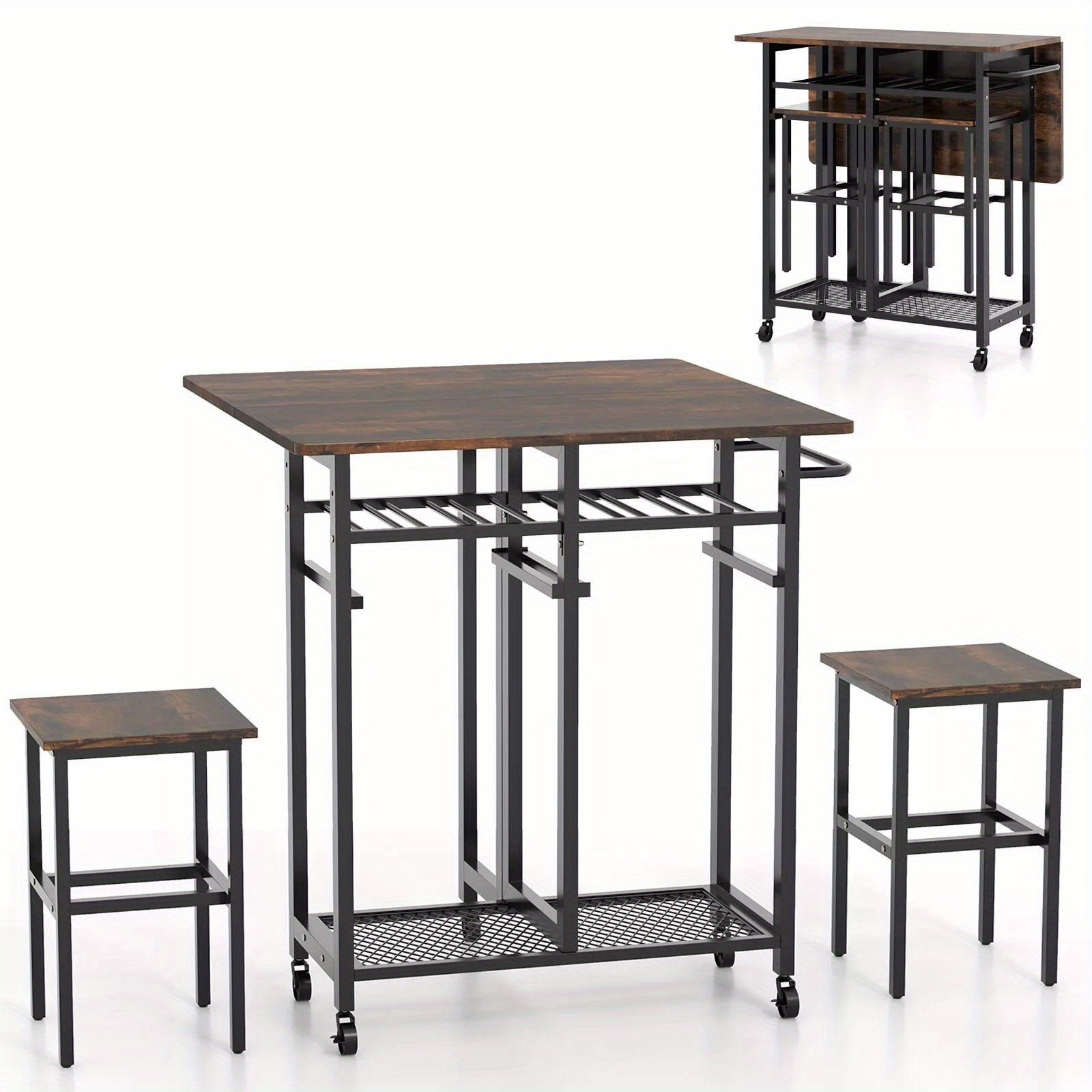 TEMU Modern Dining Table Set With 2 Bar Stools, Id...