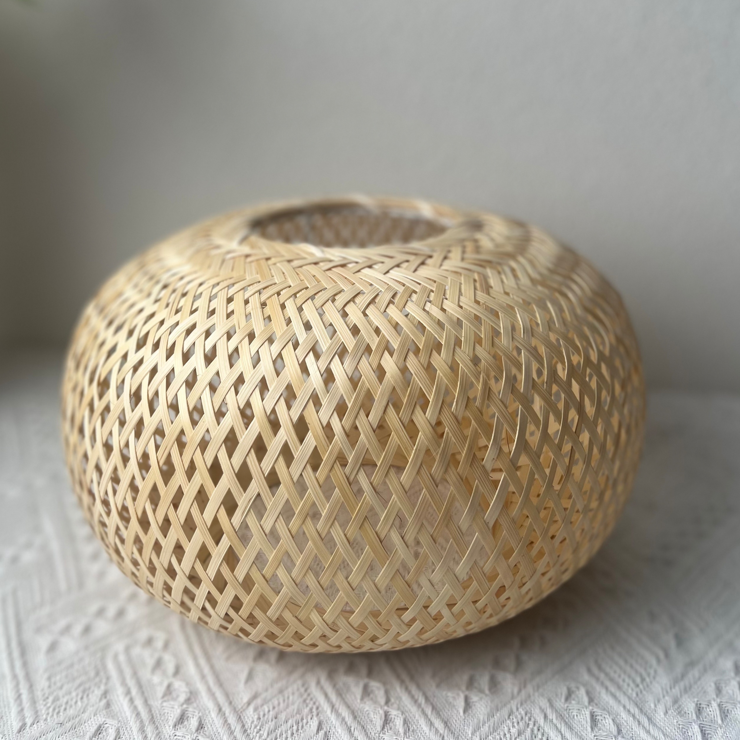 TEMU Handmade Bamboo Pendant Light Shade - Vintage Birdcage Style, Woven Design, Natural Golden , Decorative Art Piece (accessories Not Included), Decorative Lighting | Artistic Pendant | Natural