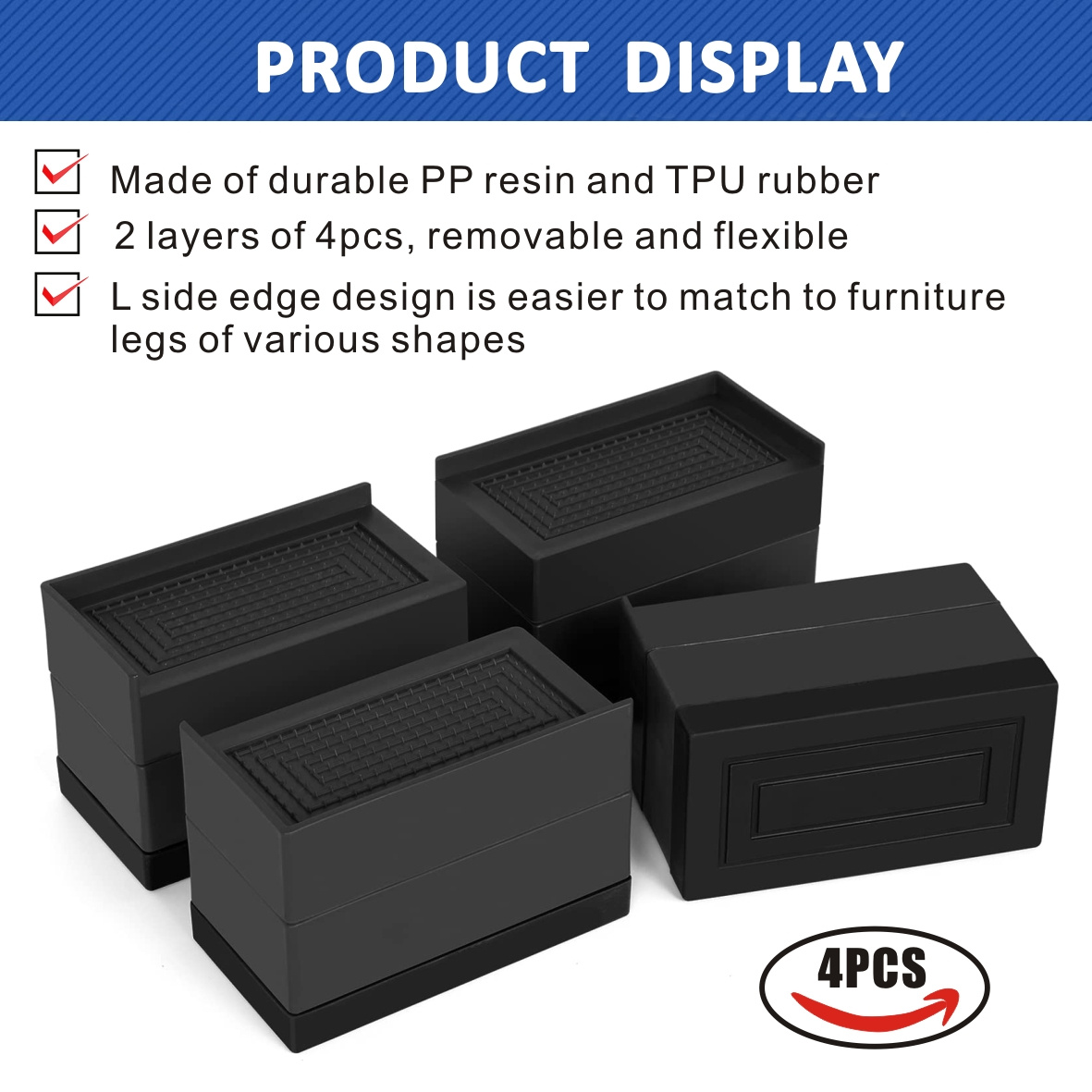 TEMU Heavy Duty Bed Risers Set Of 4 - 6 Inch Lift Supports 6000 Lbs For Sofa, Table, Chair Legs - Wide Furniture Elevators With L Side Design For Easy Placement - Easy