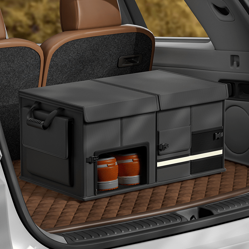 TEMU High-capacity Car Trunk Organizer With Rear Seat Storage, Black Fabric Multi-compartment Cargo Liner For Vehicle Interior Accessories, Universal Fit Plastic Trunk Storage Organizer