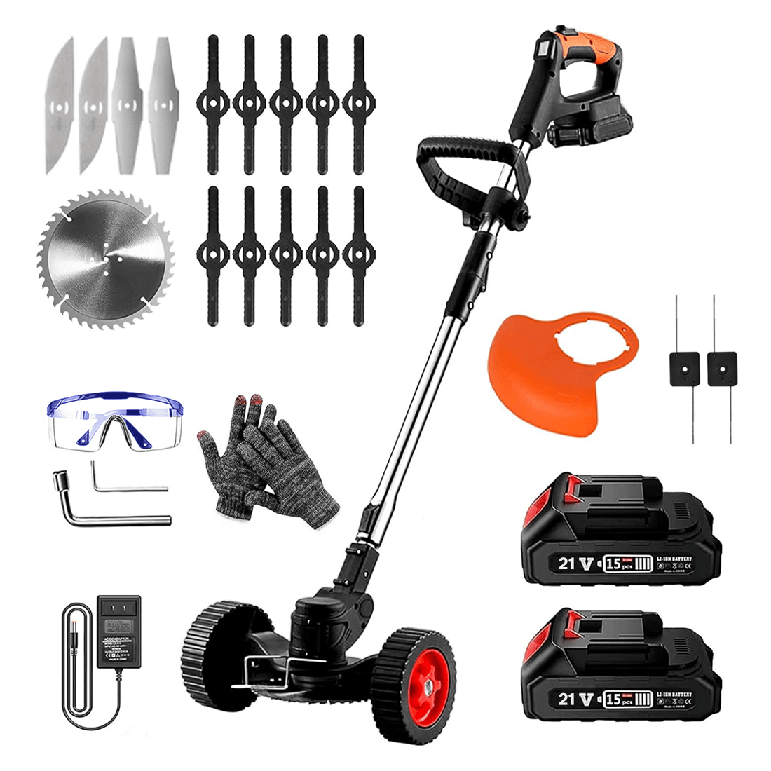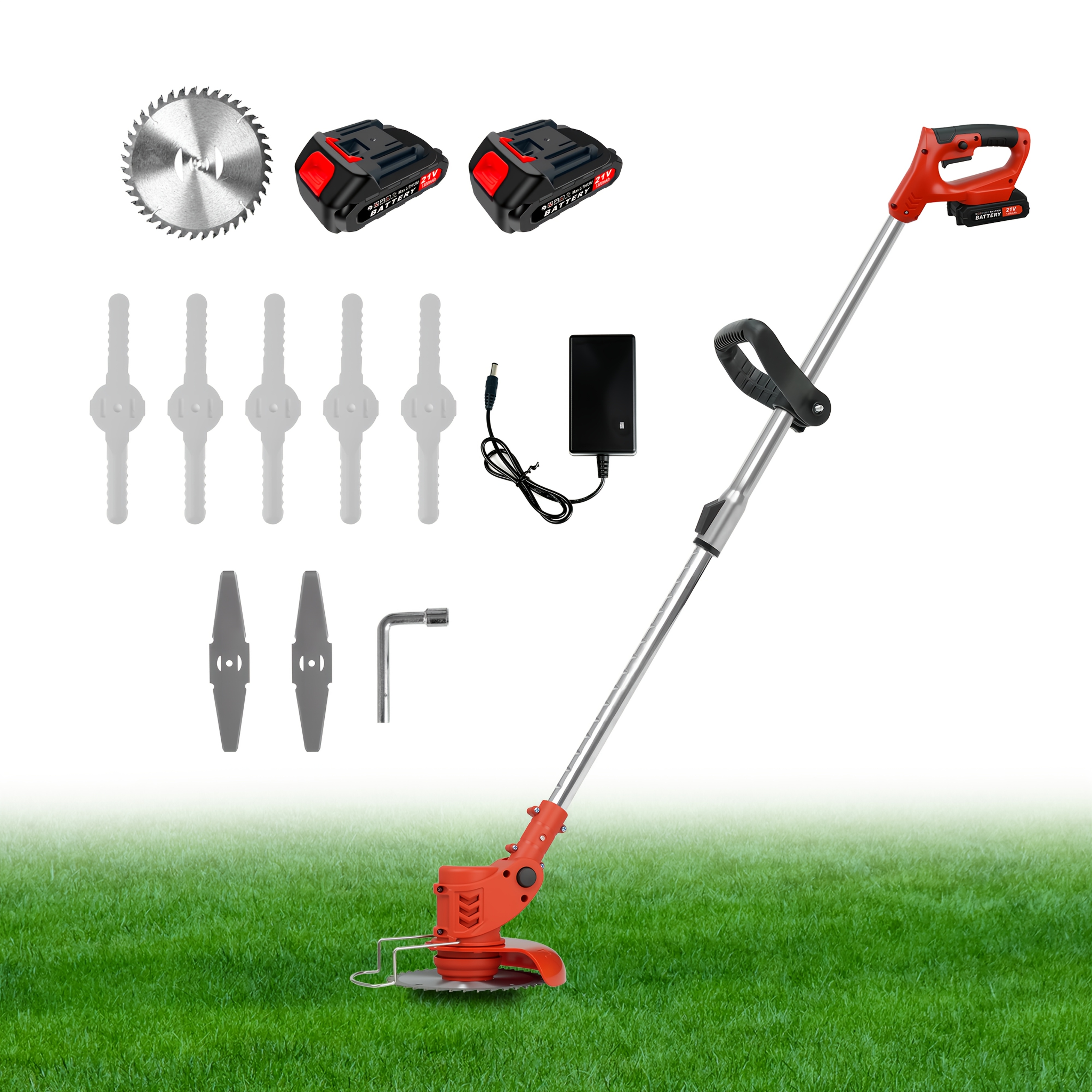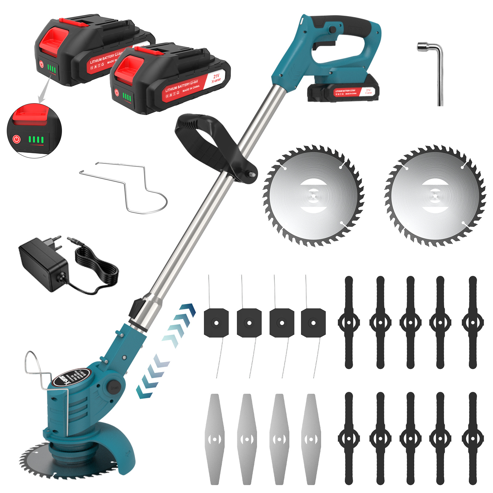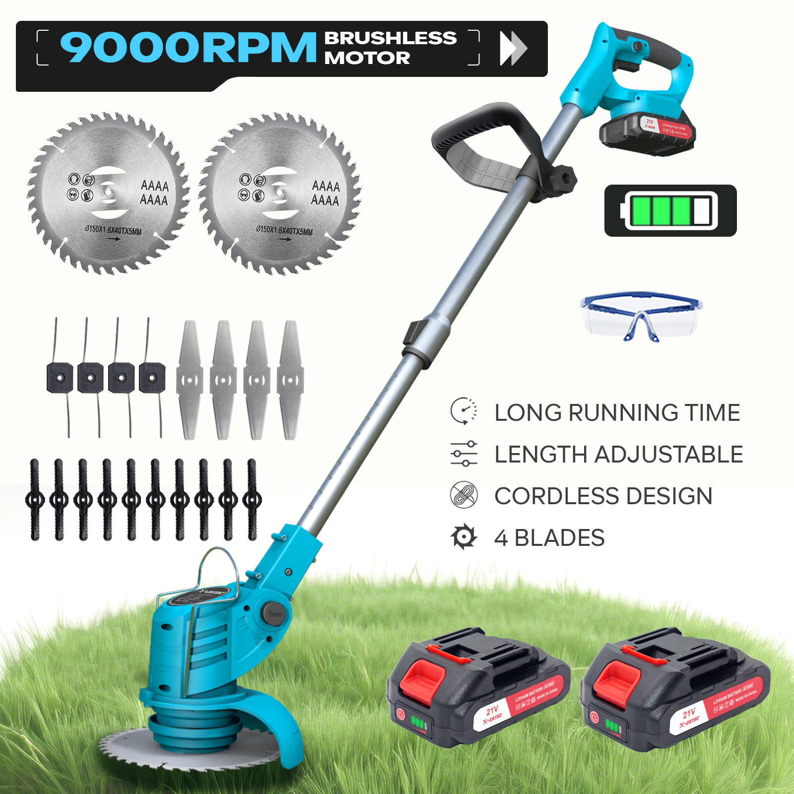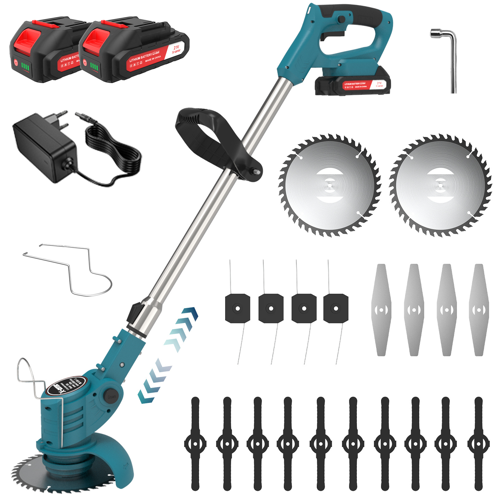 Product information for TEMU Home Small Portable Electric Lawn Mower, 21v With 2 Lithium Batteries, 3 Types Of Blades, Cordless Brush Mower For Weeds And Grass, Multifunctional Yard Handheld Weeder