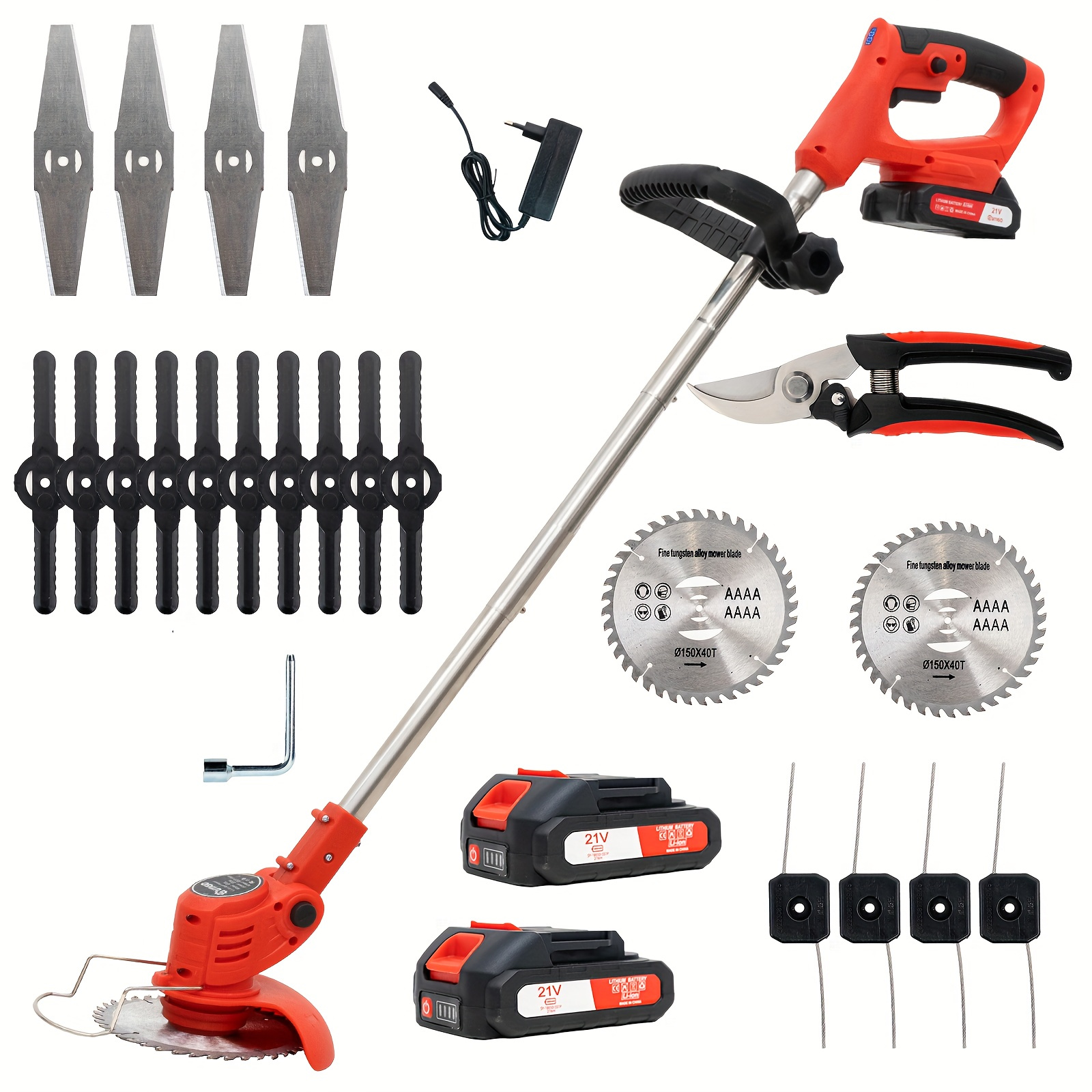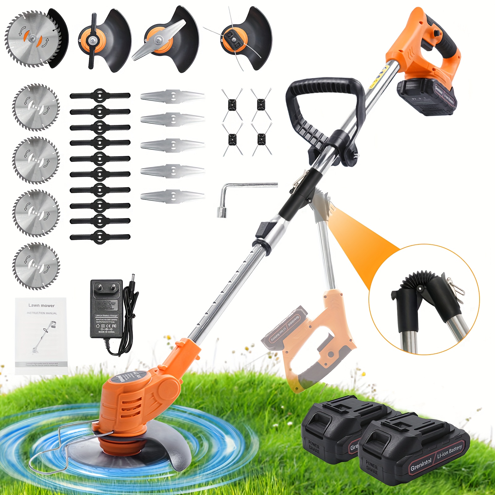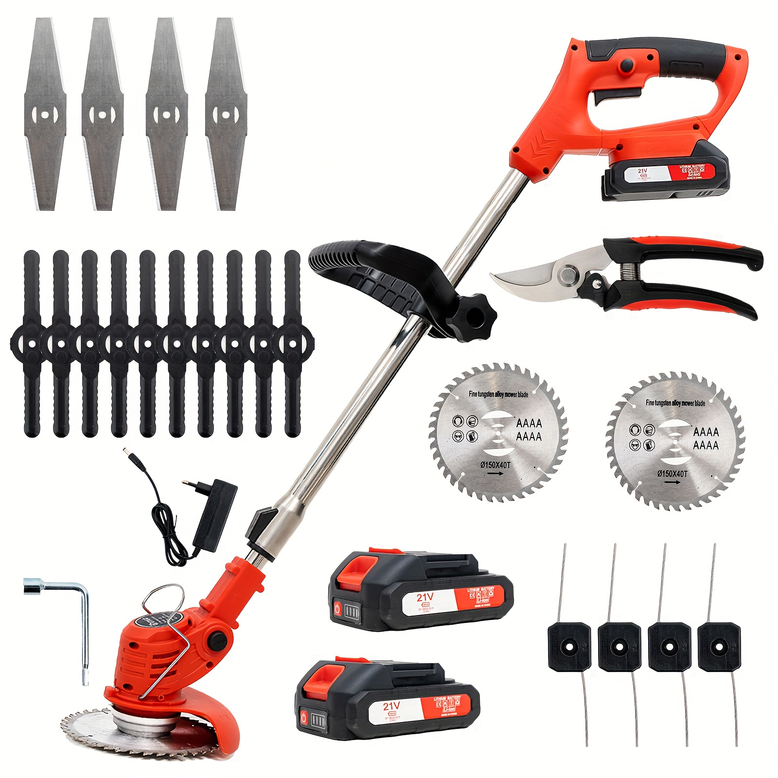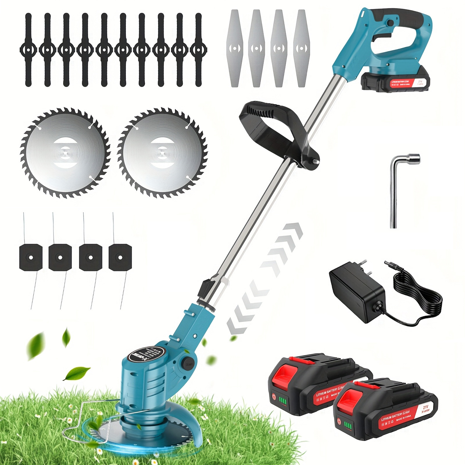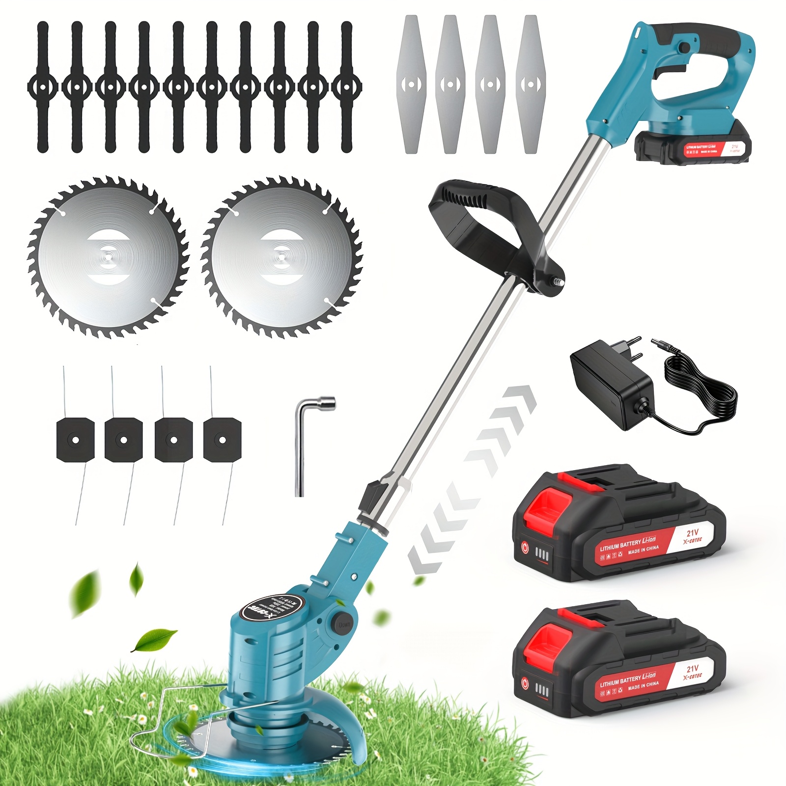 TEMU Home Small Portable Electric Lawn Mower, 21v With 2 Lithium Batteries, 3 Types Of Blades, Cordless Brush Mower For Weeds And Grass, Multifunctional Yard Handheld Weeder