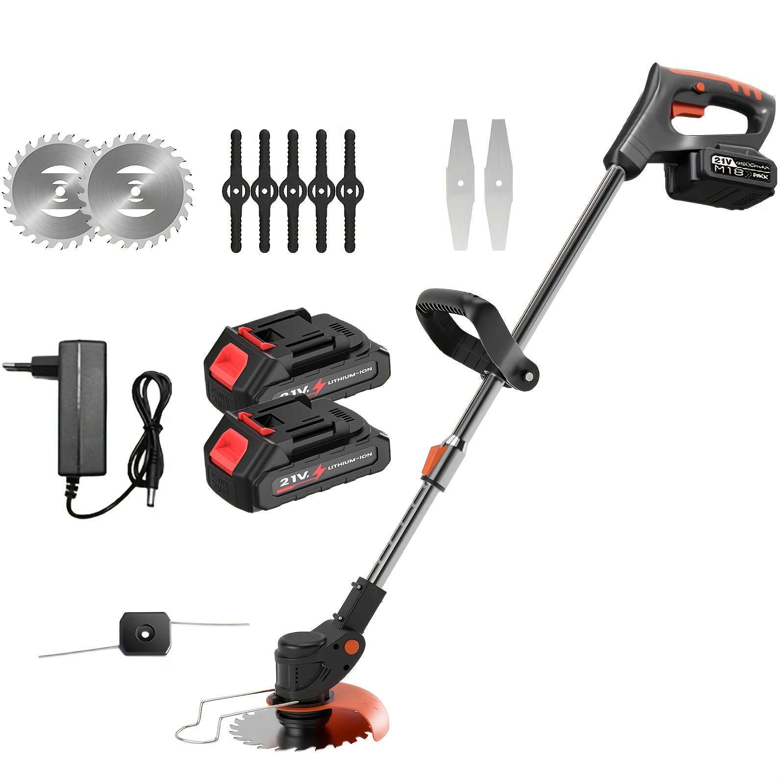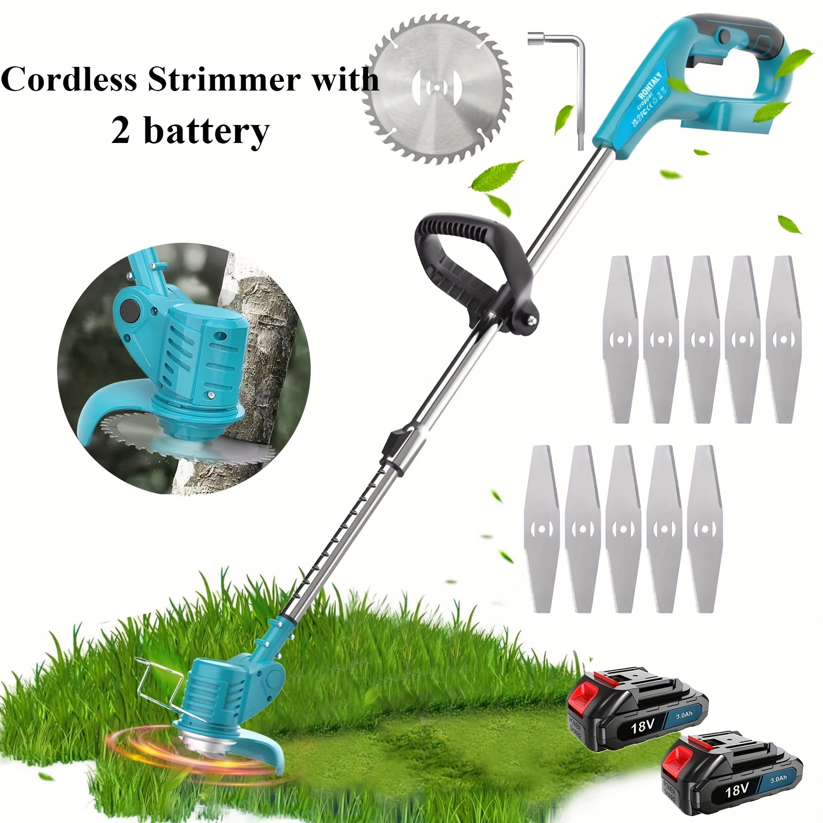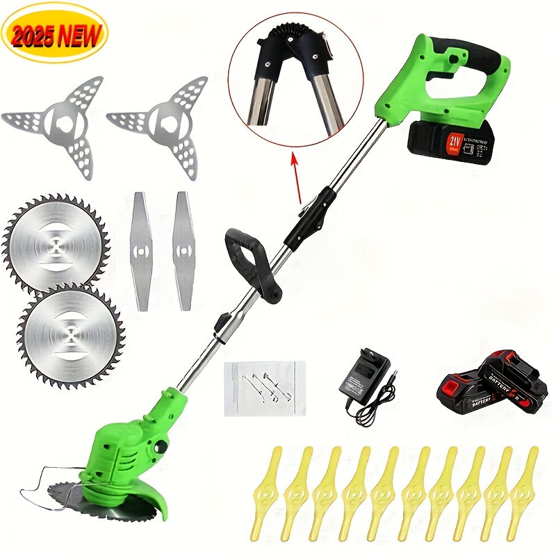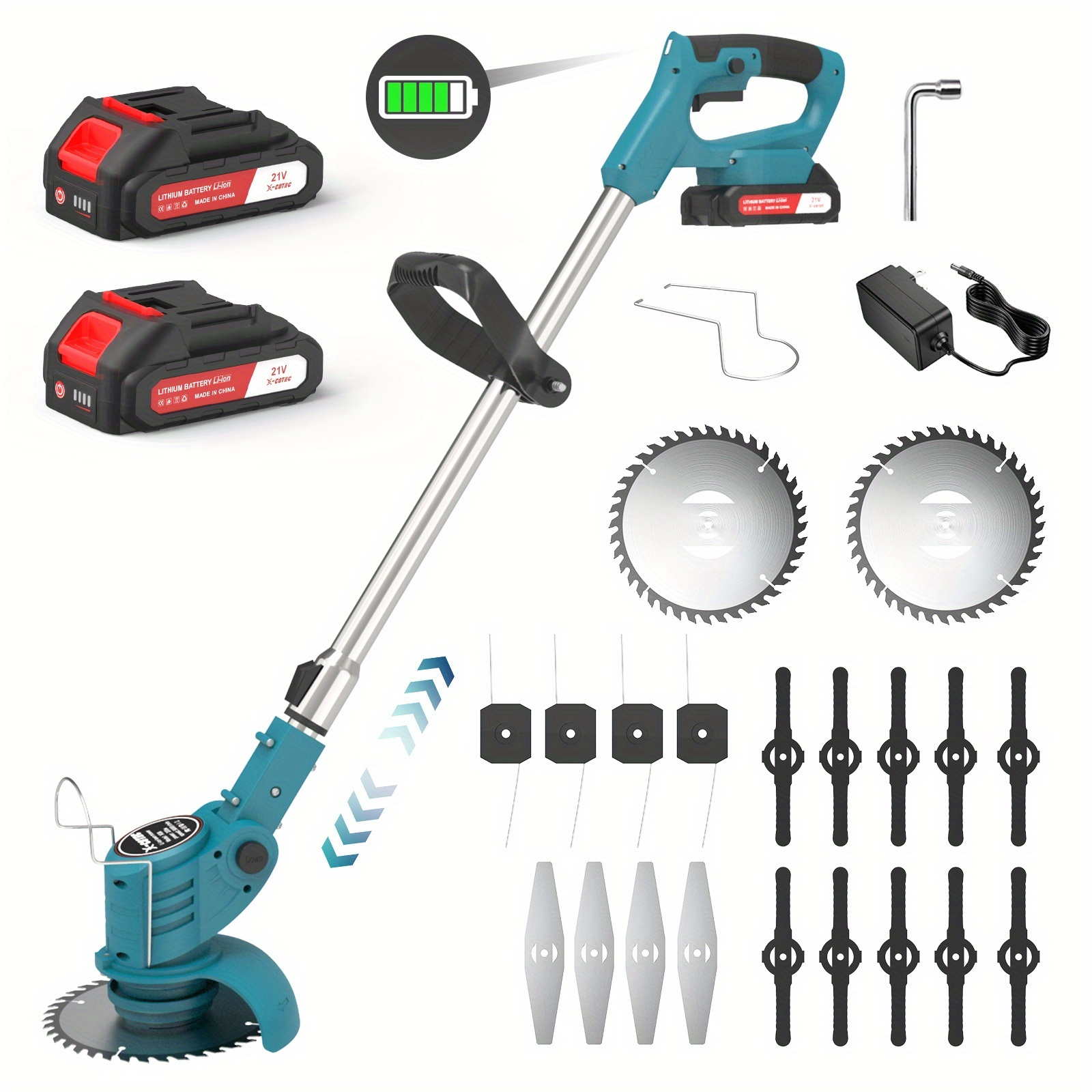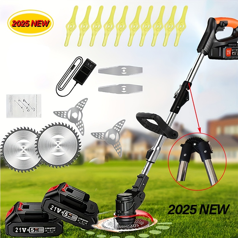 TEMU Home Small Portable Electric Lawn Mower, 21v With 2 Lithium Batteries, 3 Types Of Blades, Cordless Brush Mower For Weeds And Grass, Multifunctional Yard Handheld Weeder