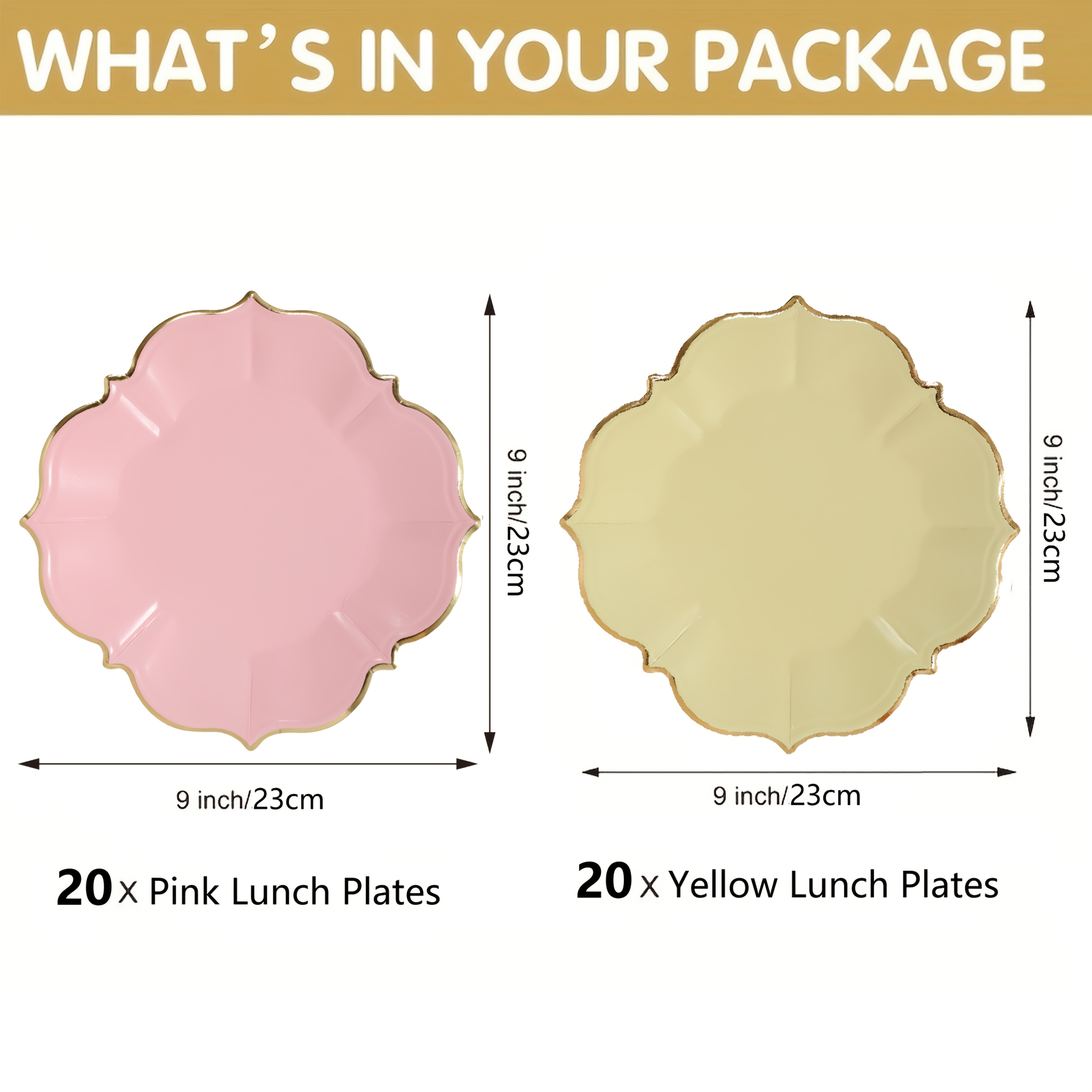 TEMU 40 Stück Rosa und Gelbe Partyteller - Robuste...