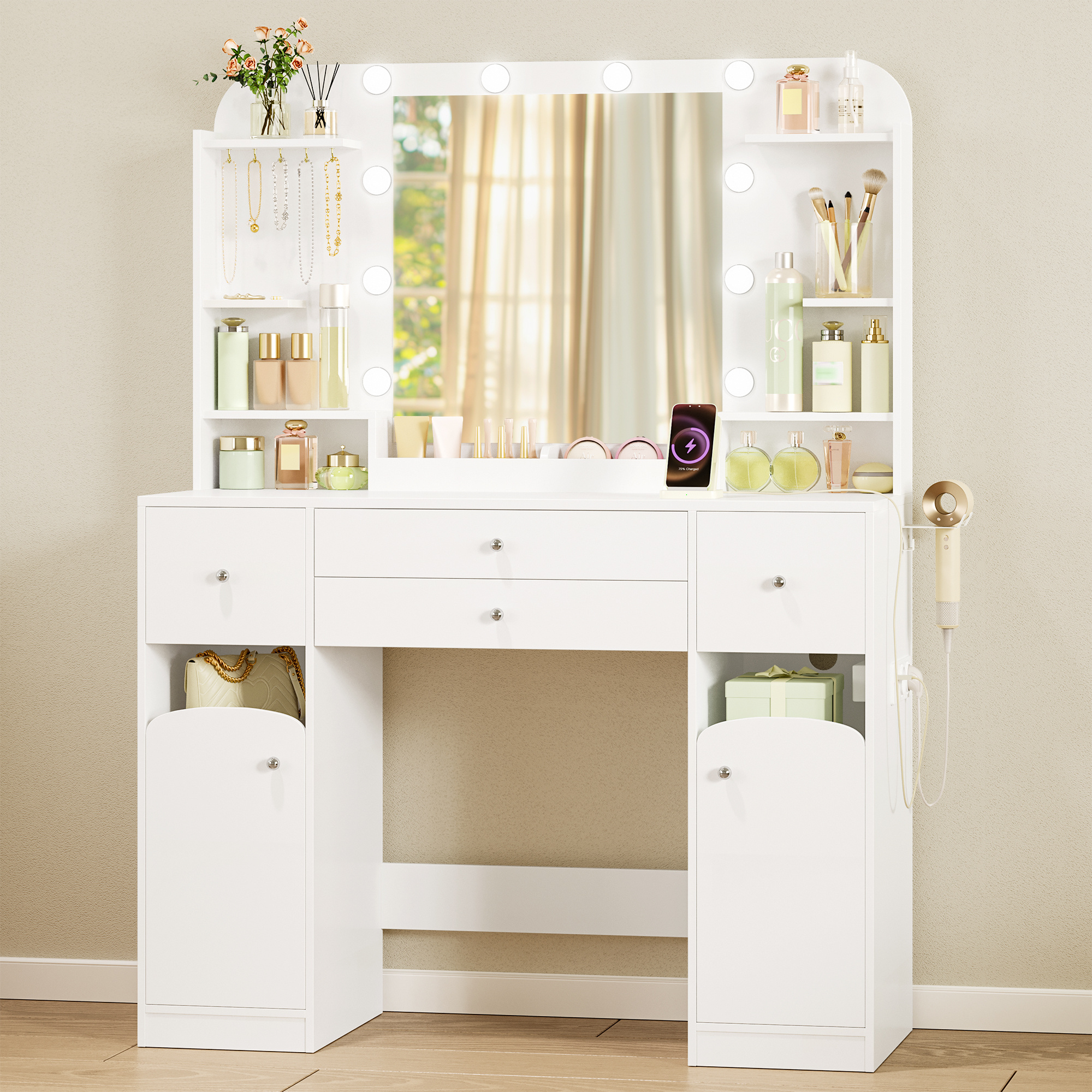 TEMU Jewelry Mirrored Cabinet Armoire Organizer Storage Box W/ Stand Christmas Gift