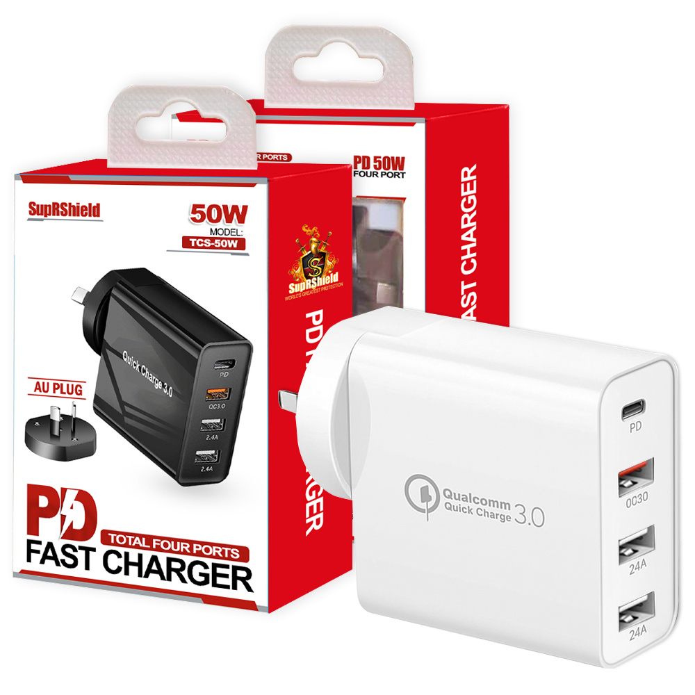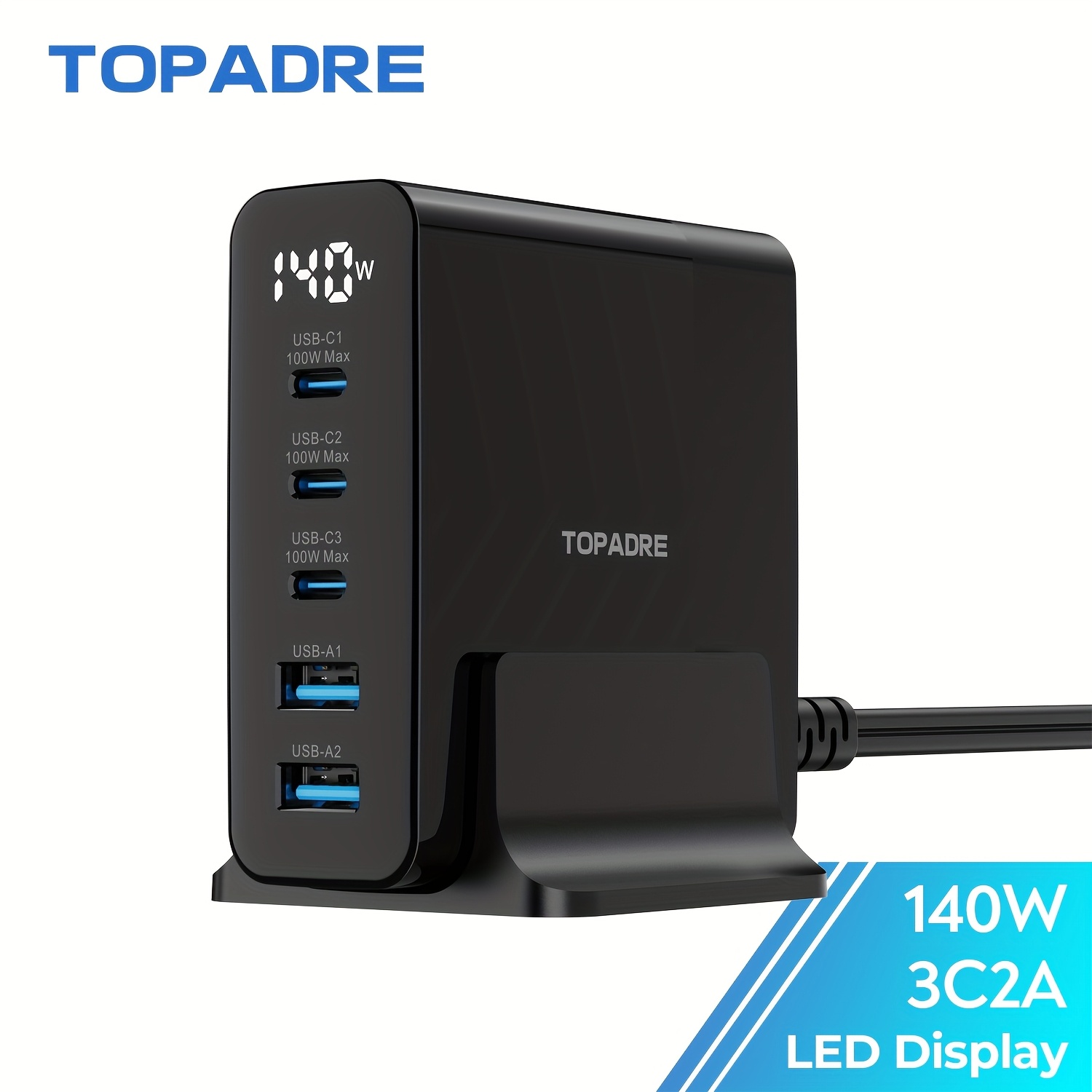 Product information for TEMU KAXOE Chargeur rapide 40W USB, 2 USB-C et 2 USB-A, adaptateur de prise UE, plage de tension 85-265V, technologie de charge rapide, idéal pour les smartphones et les