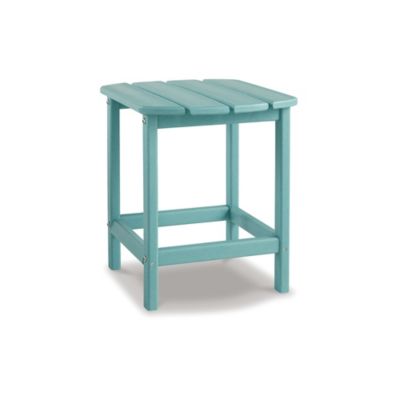 Add cottage-quaint charm to your outdoor oasis with the Sundown Treasure outdoor end table. Made of our MEGA TUFF high-density polyethylene material, its sure to weather the seasons beautifully. Designed to shed rainwater, the tables slatted top with gently rounded corners provides exceptional form and function. Made of MEGA-TUFF HDPE (a high-density polyethylene), which gives the wood look you love and the weather resistance you crave Stainless steel hardware Designed to withstand the harsh elements of the outdoors Slatted design Assembly required | Signature Design by Ashley Sundown Treasure End Table, Blue