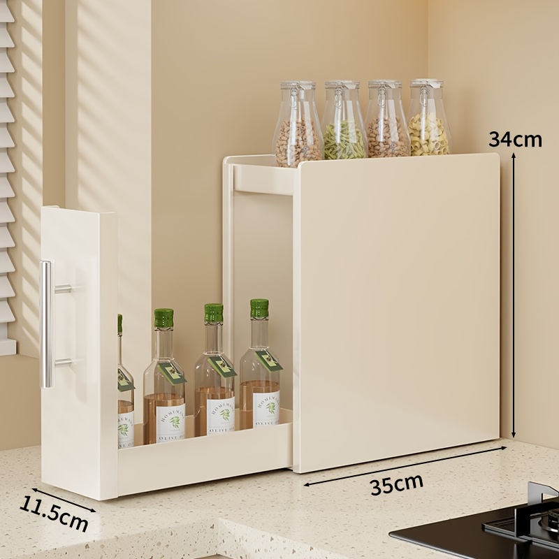 TEMU Ldq 3-tier Pull-down Spice Rack - Space-saving Kitchen Organizer For Spice Jars, Easy- Metal Storage Shelf With Retractable Design