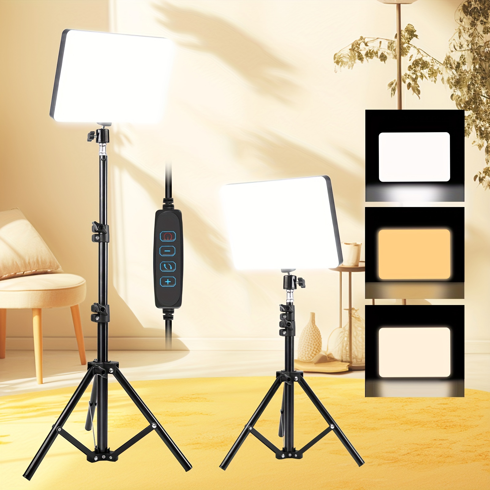 TEMU إضاءة LED قابلة للتعتيم مع 4 فلاتر ملونة، قاعدة قابلة للتعديل بطول 50 بوصة، إضاءة استوديو تعمل بالطاقة عبر USB للتصوير الفوتوغرافي، تسجيل الفيديو، والبث - إضاءة محمولة للاستخدام في الهواء الطلق