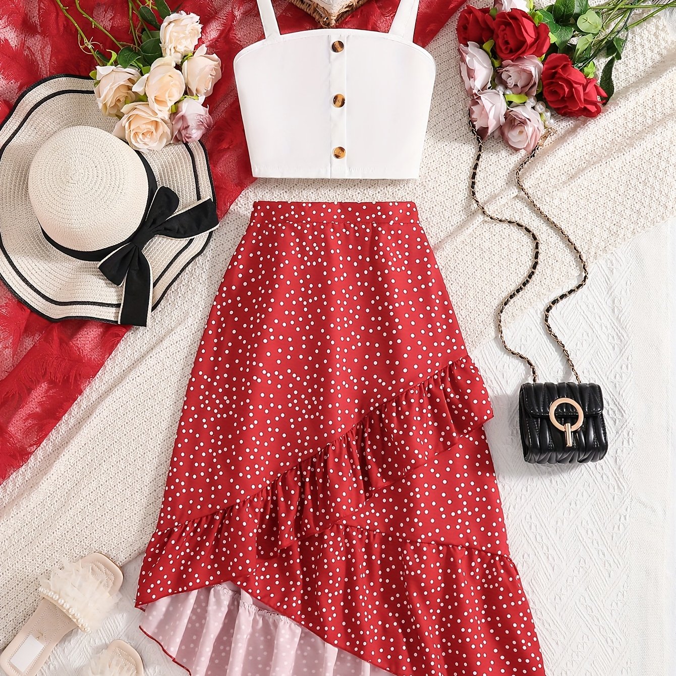 TEMU Letter Print Camisole Top + Long Sleeve Two-piece Set, Outdoor