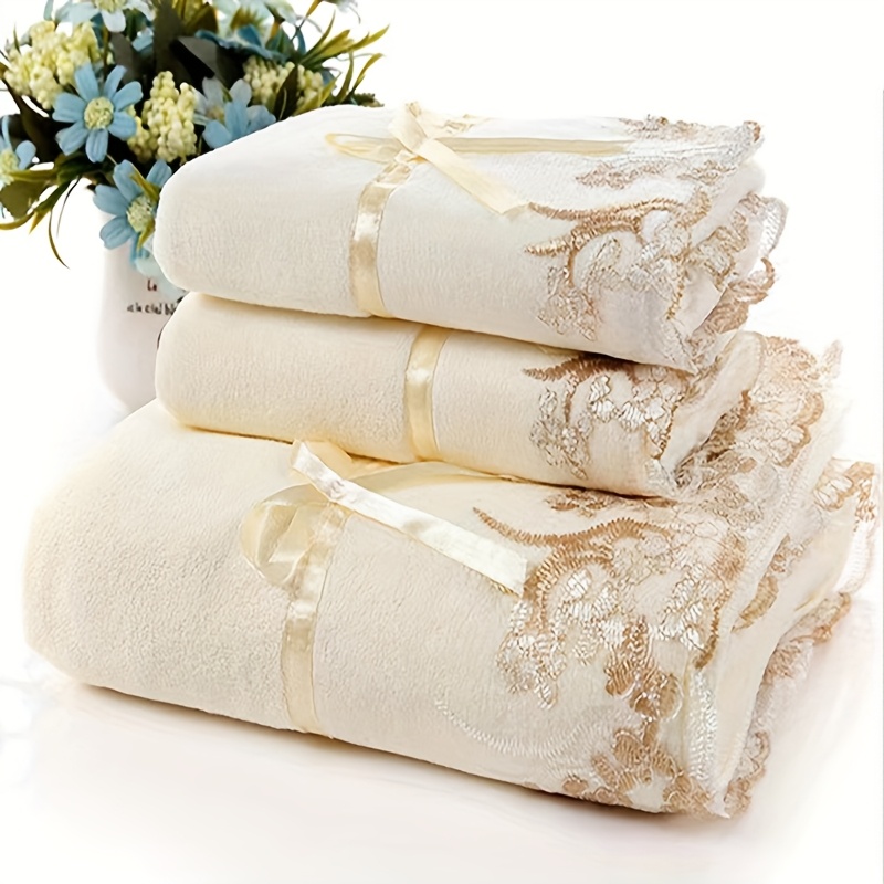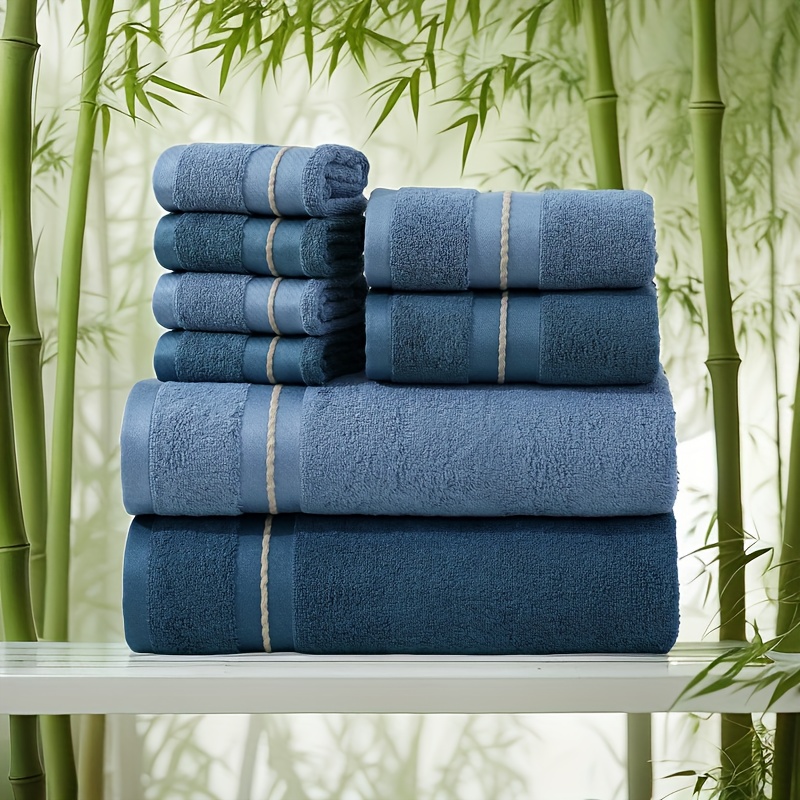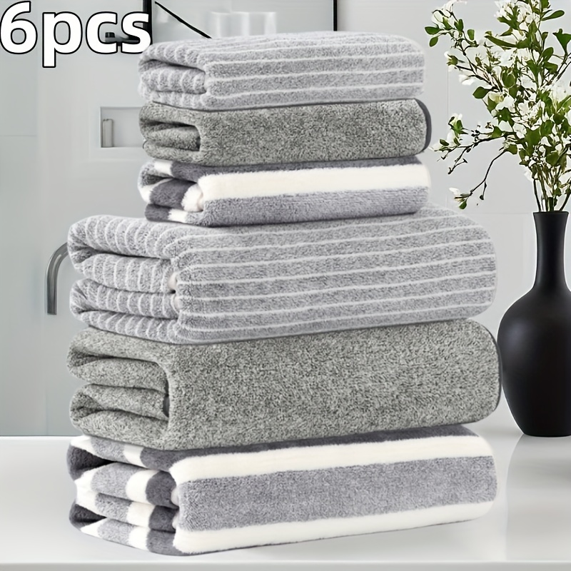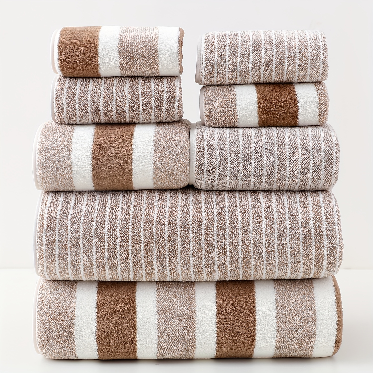 TEMU [luxury Striped Towel Set]highly Absorbent, Quick-drying, Machine Washable | Premium Knitted Polyester Fabric | Essential For Home, Travel, And Hotel Bathrooms