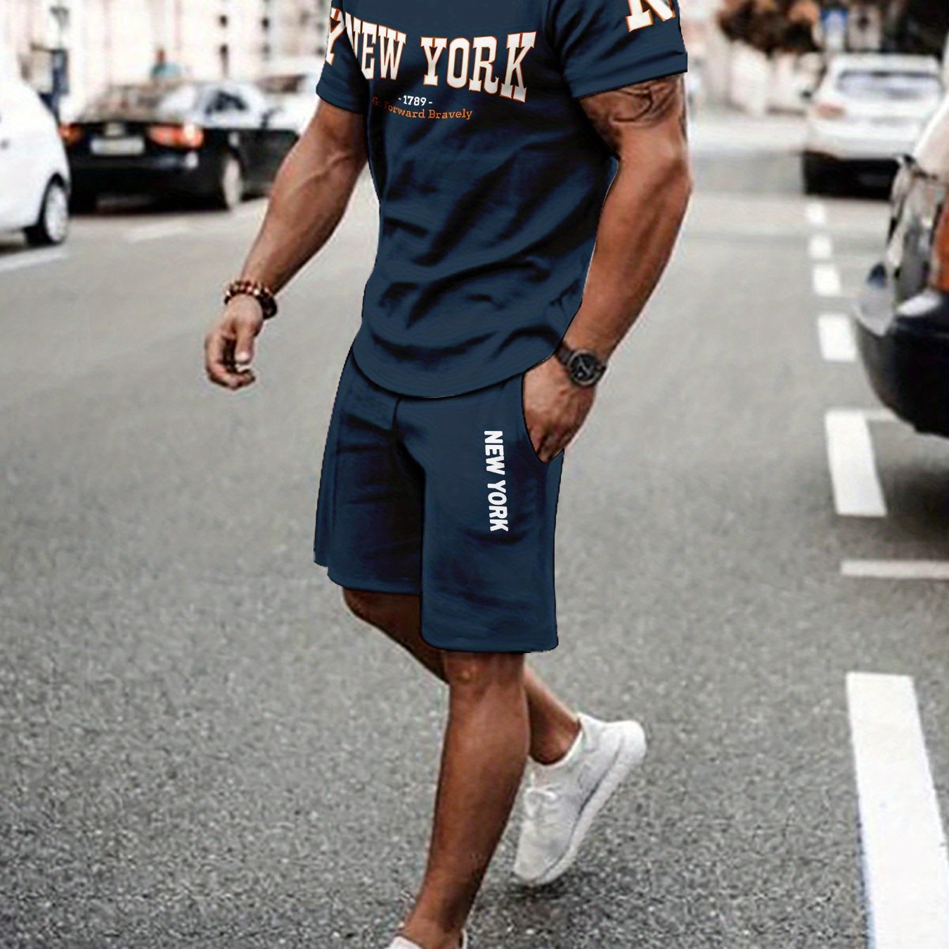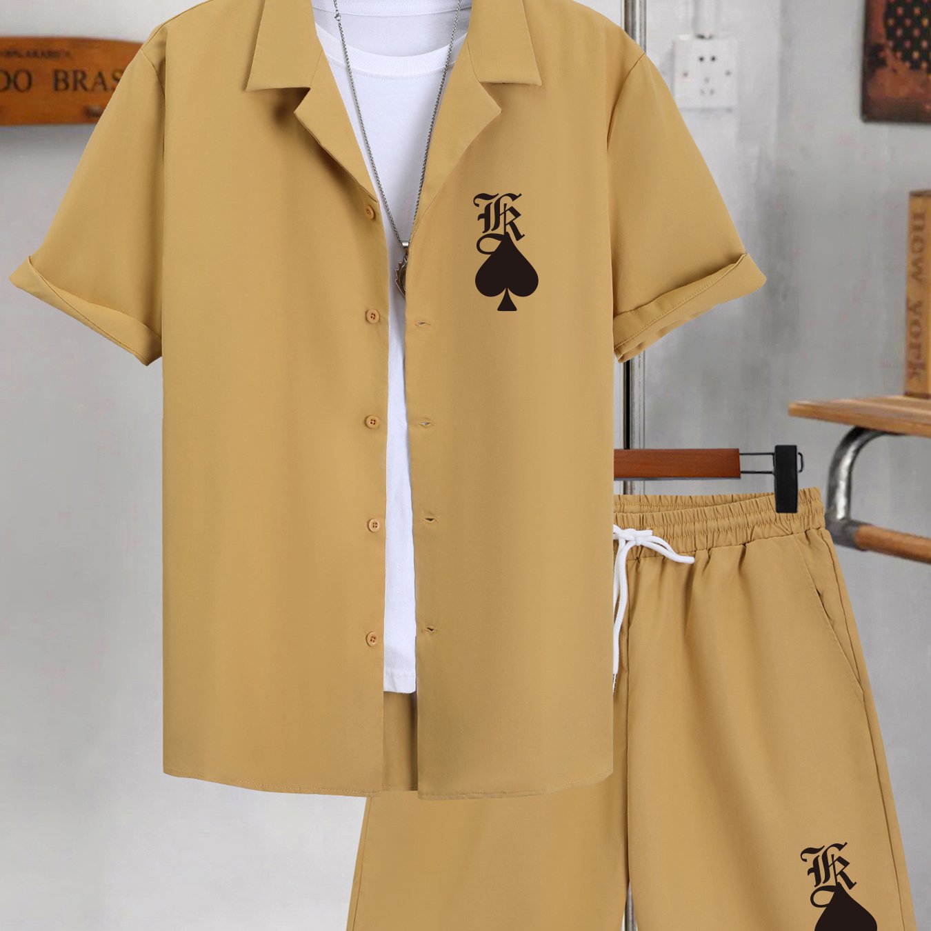 TEMU Men's Casual Baseball Collar Jacket And Pants Set, Color Block Long Sleeve Sweatshirt And Sweatpants, Polyester Woven Suit With Button Detail, Spring/fall Collection