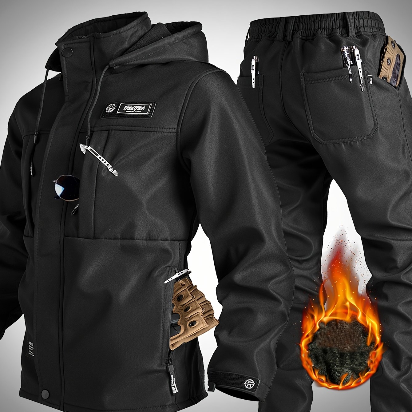 Product information for TEMU Men's Casual Baseball Collar Jacket And Pants Set, Color Block Long Sleeve Sweatshirt And Sweatpants, Polyester Woven Suit With Button Detail, Spring/fall Collection