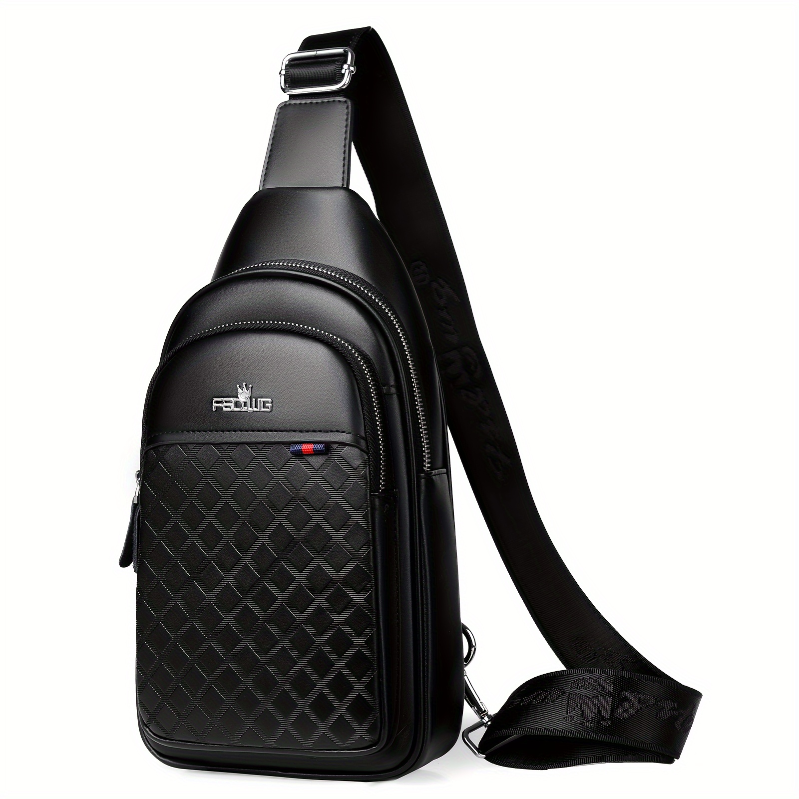 Product information for TEMU Men's Chest Bagmen's Stylish Black Pu Crossbody Chest Bag, Multiple Compartments & Adjustable Strap For Office, Travel & Everyday Use, Bag | Functional Fashion | Pu Bag, Crossbody Bag
