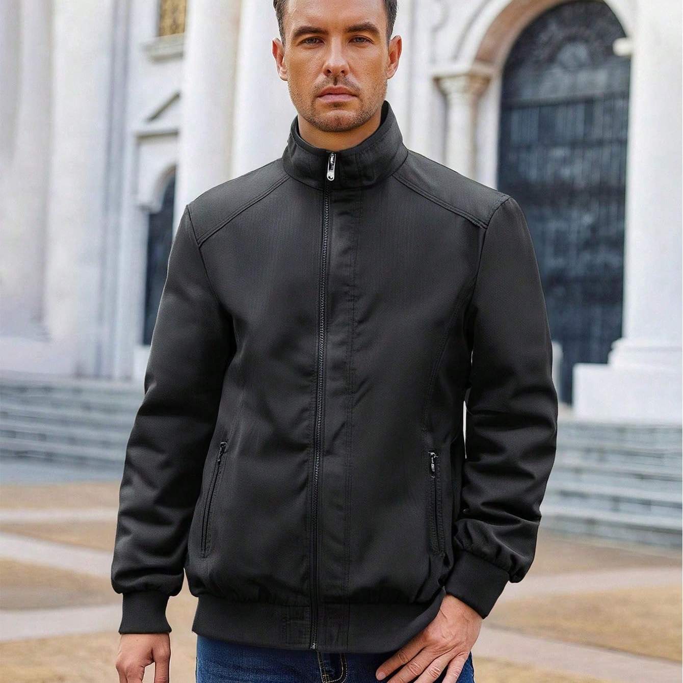 Product information for TEMU Men's Fashion Casual Jacket With Hood And Drawstring, Solid Color, Suitable For Spring And Autumn Casual Attire