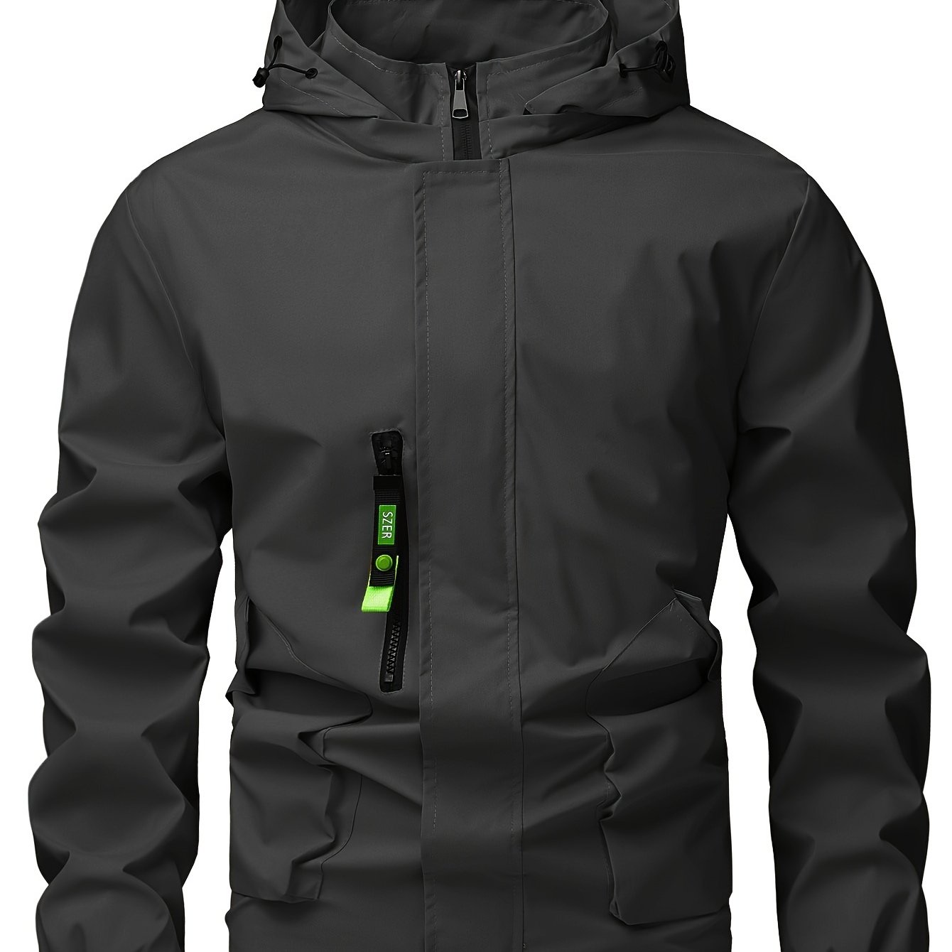 TEMU Men's Fashion Casual Jacket With Hood And Drawstring, Solid Color, Suitable For Spring And Autumn Casual Attire