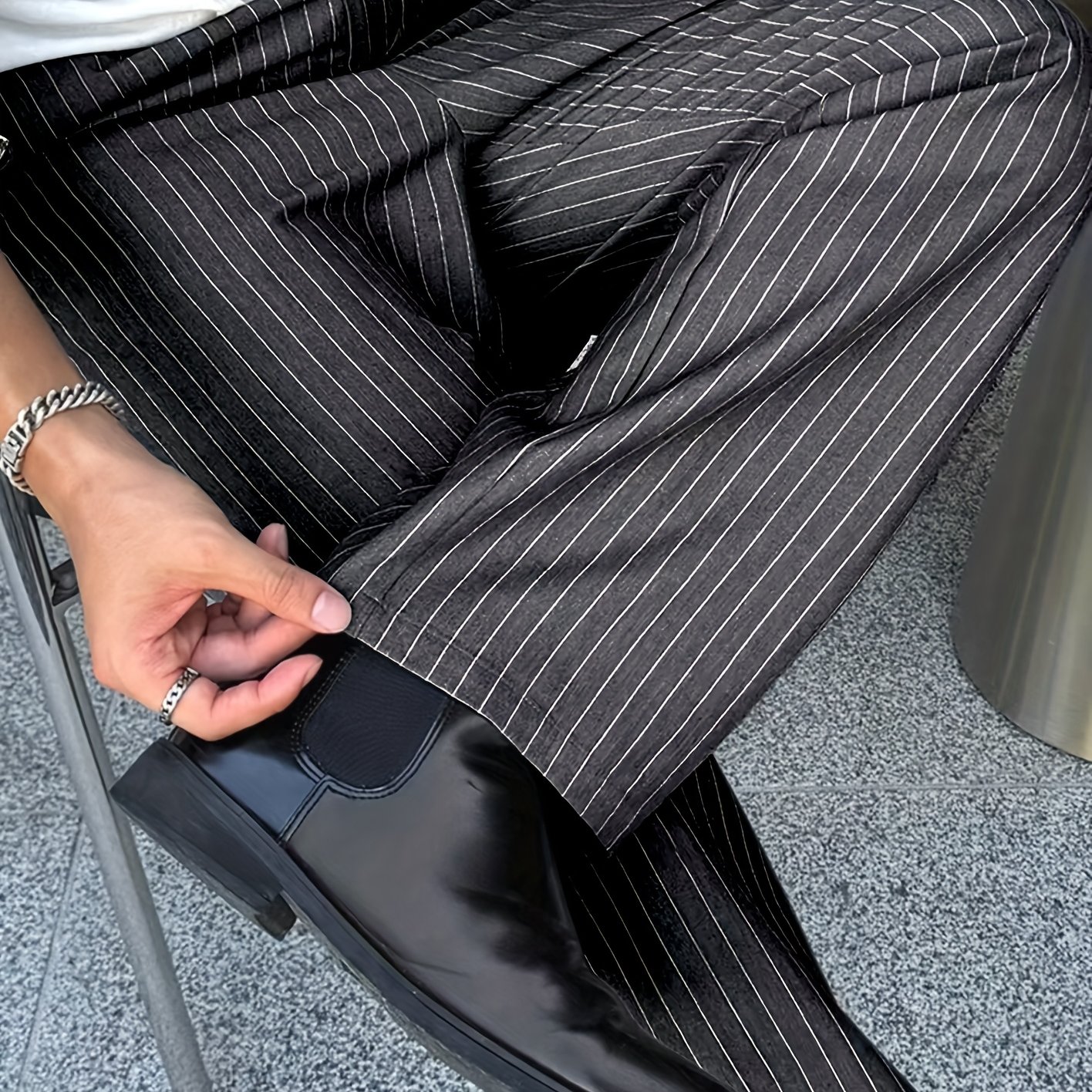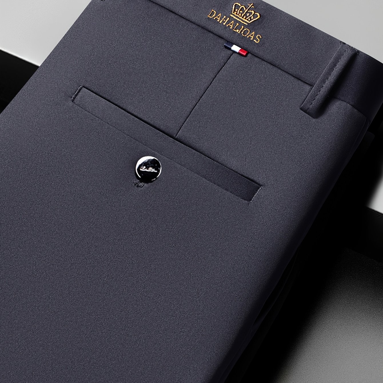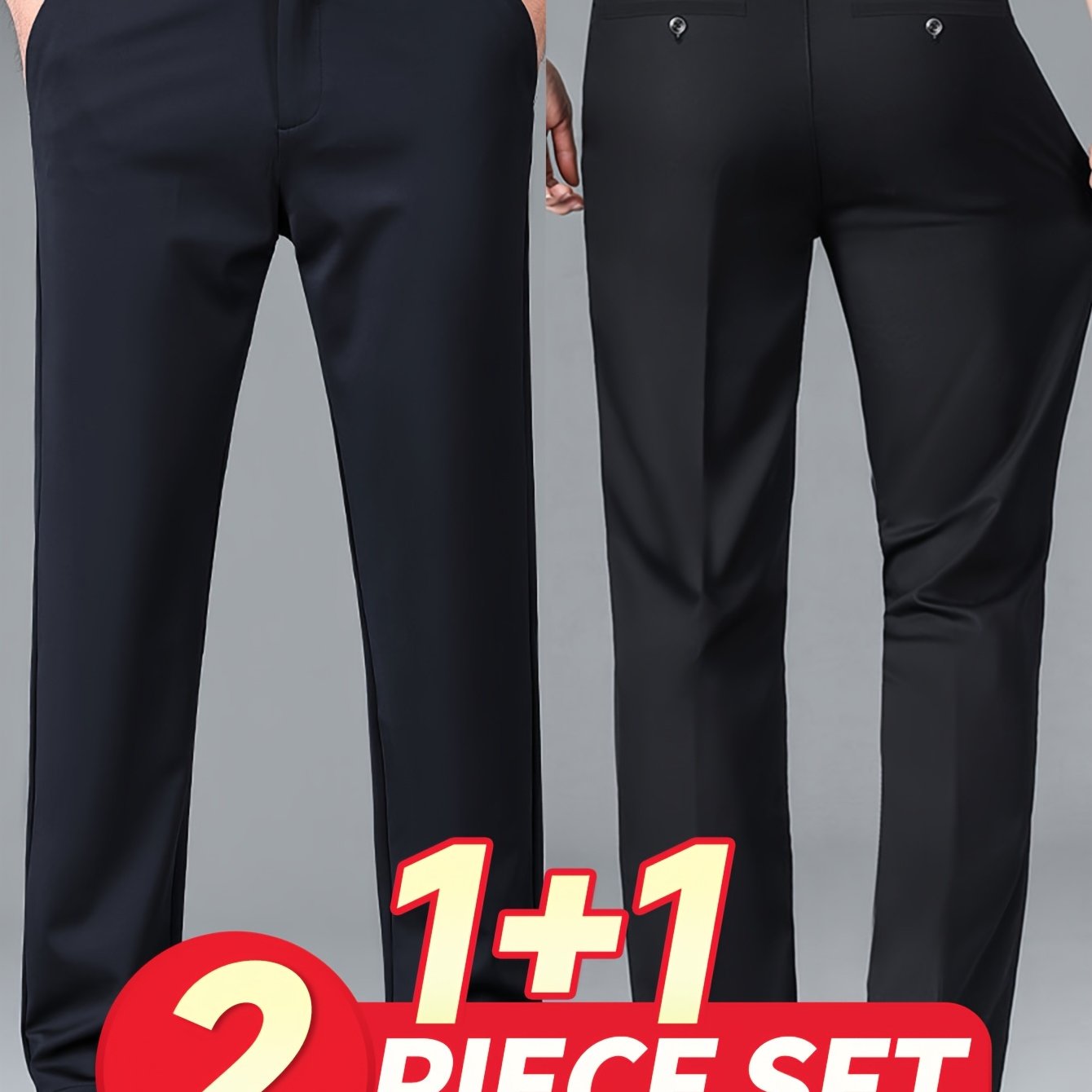 TEMU Men's High Waist Pleated Straight Leg Suit Pants, , Solid Color, Polyester, Non-stretch Fabric, Regular Length, With Pockets, For Woven Trousers