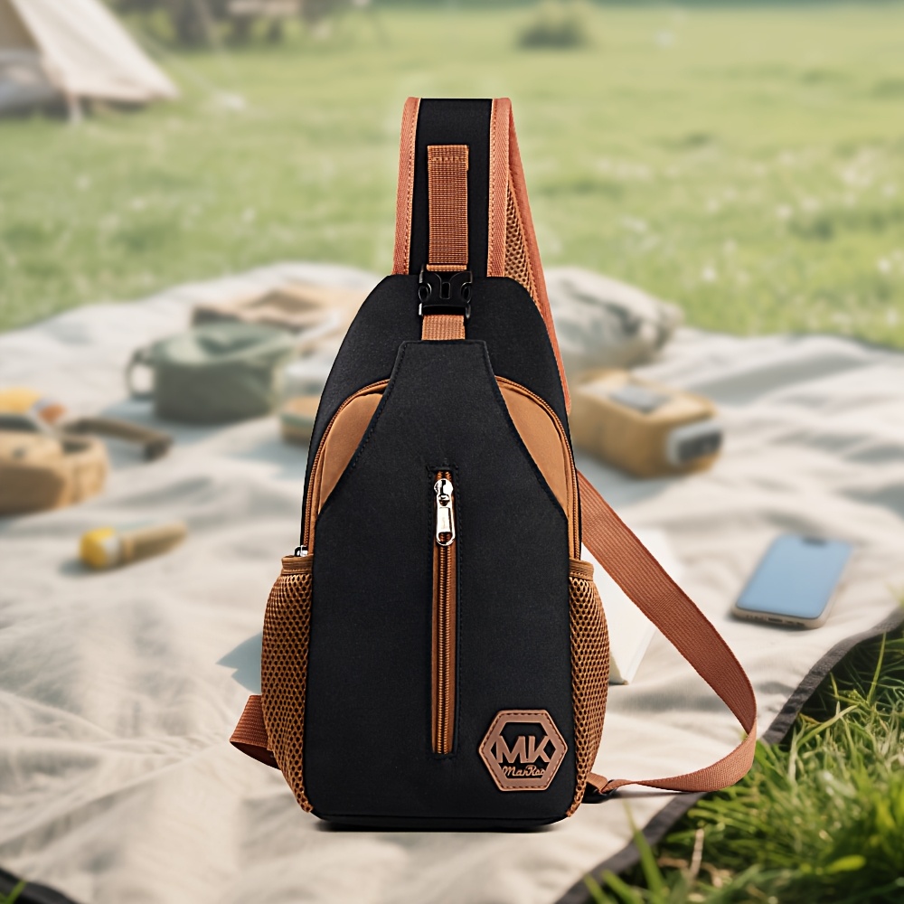 TEMU Men's Nylon Crossbody Bag - Multi-pocket, Stylish Casual Sling For Outdoor Activities, Cycling & Hiking