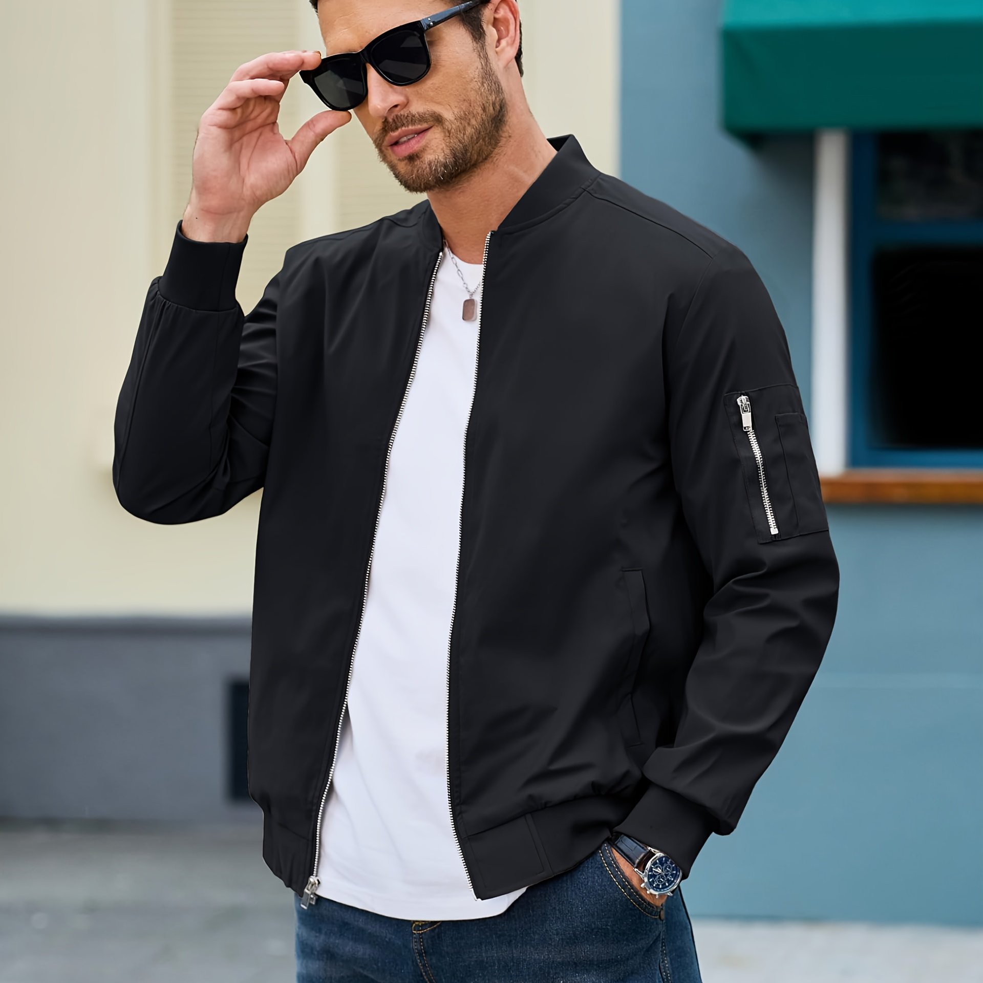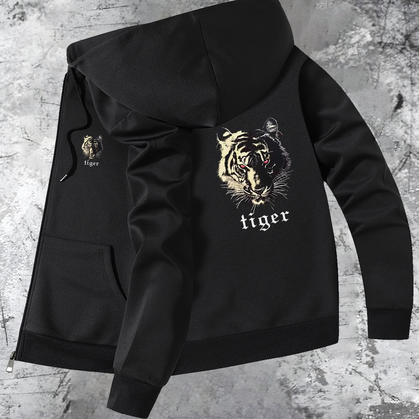 TEMU Men's Stylish Crocodile Graphic Print Hooded Baseball Jacket - Navy Blue, Casual & Sporty With Pockets, Zip-, Spring/fall Outdoor Activities & Dates