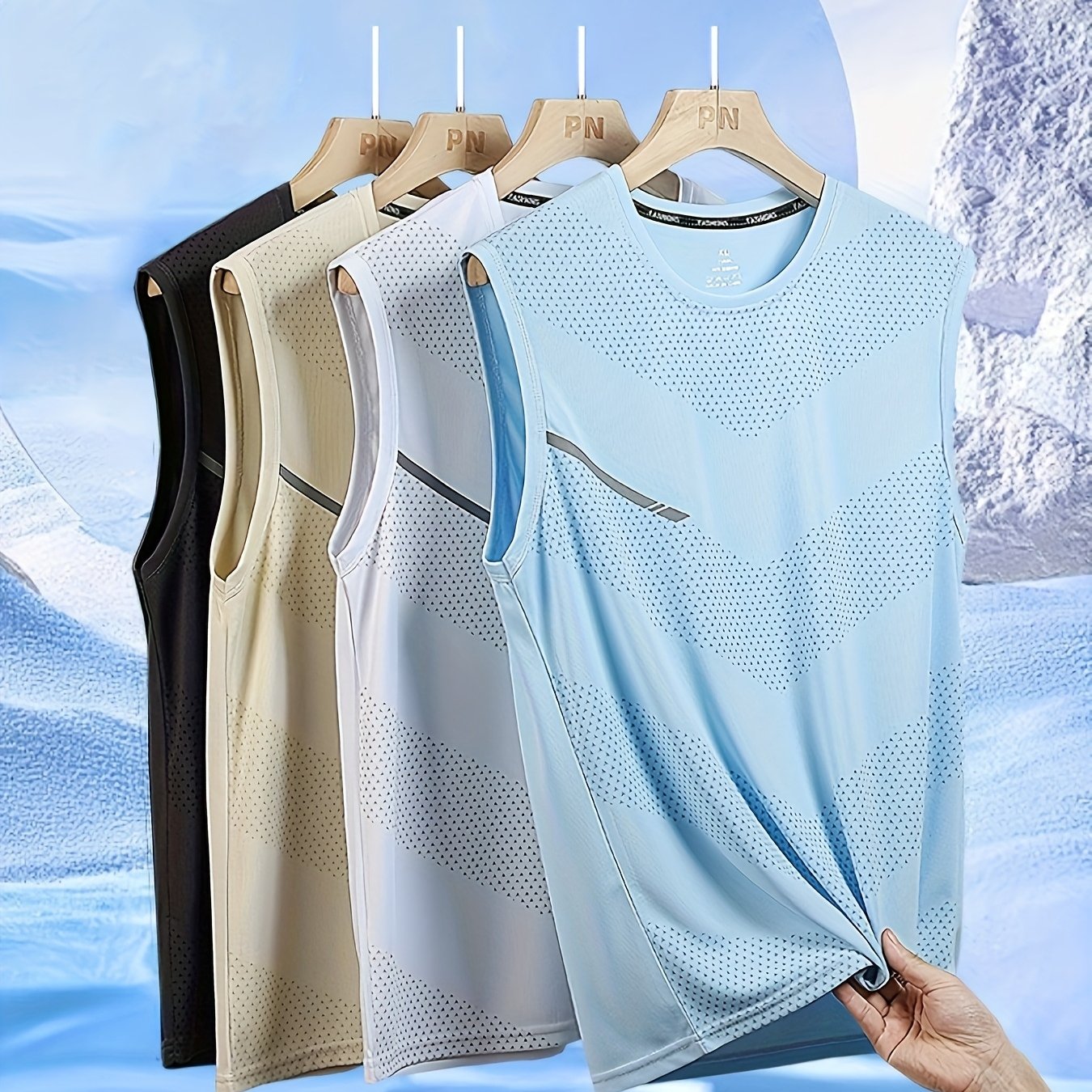 TEMU Men's Tropical Print Sleeveless Tank Top - Vibrant Palm Tree & Sunset Design, Stretchy Polyester Blend, Casual Summer Beachwear For Adults, Casual Attire | Tropical Print Top |