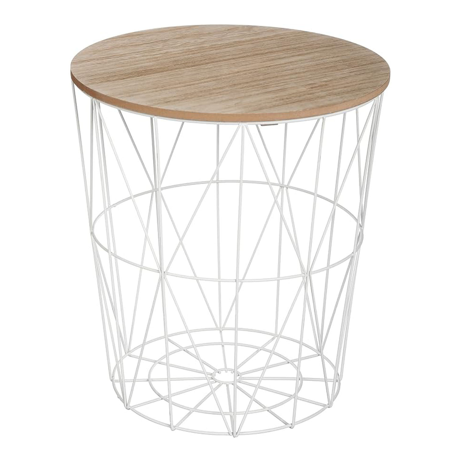 TEMU Mesa auxiliar redonda para salón en acero con superficie de madera